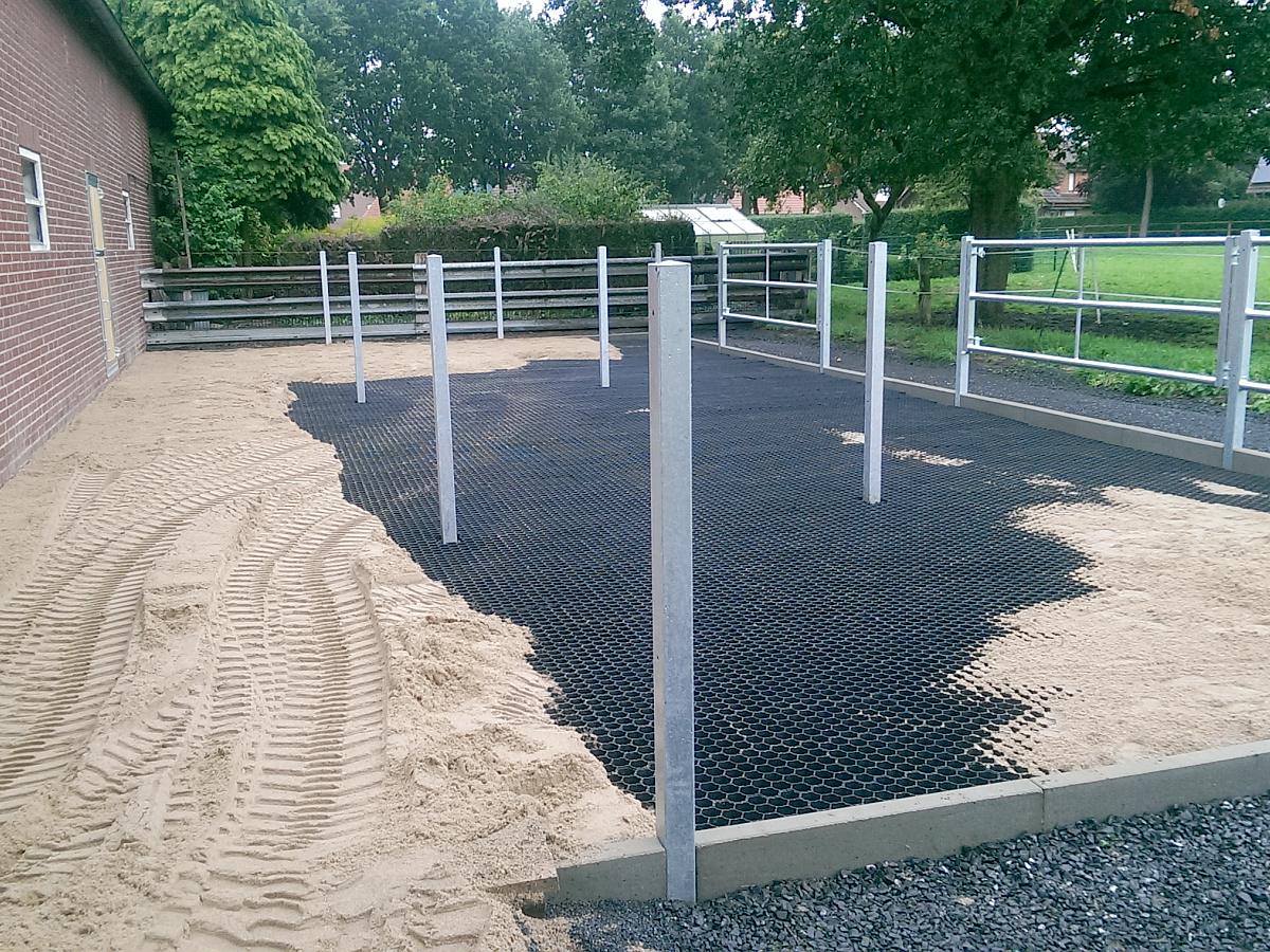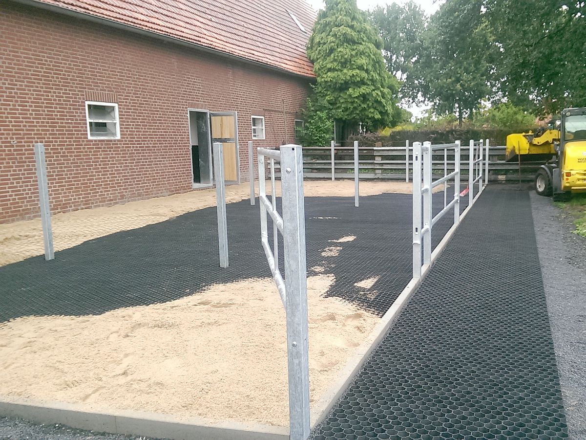 Sicherheit beginnt mit einem festen Stand. Unsere Paddockgitter sind deswegen die perfekte Antirutschmatte für Pferde. Ob nun im gesamten Außenbereich, oder an der Futterstelle - einfach auf dem befestigten Boden verlegt, gehören matschige Böden der Vergangenheit an.