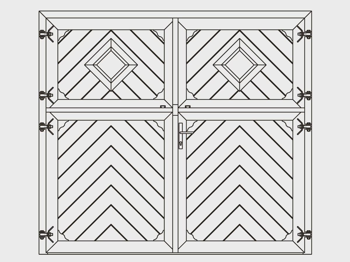 Das Growi® Stalltor in Fischgrät-Optik ist waagerecht geteilt und besteht aus vier Teil-Bereichen. Die Holzfüllung besteht aus einer wetterfesten Trägerplatte mit 12,5 mm Deckschicht aus nordischem Nadelholz. Mit beidseitiger Drückergarnitur. Gegen einen Aufpreis von 10% liefern wir unser Stalltor auch mit 30 mm starker Denjaholzfüllung.