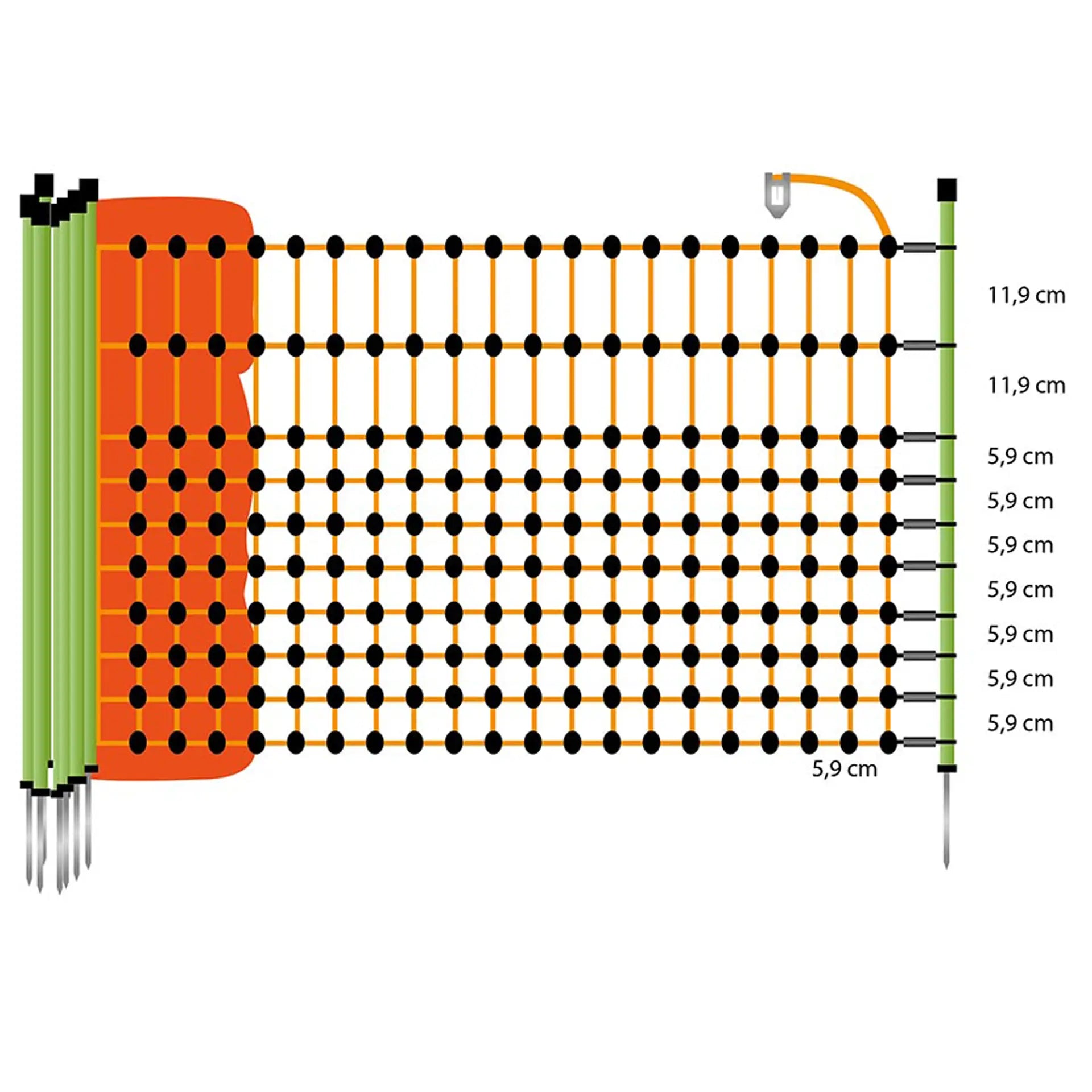 Komplettes Zaunnetz für Kaninchen und andere kleine Haustiere. Auch sehr gut geeignet zum Schutz von Garten, Acker oder Weide. Einfach zu installieren und genauso einfach umzustellen.