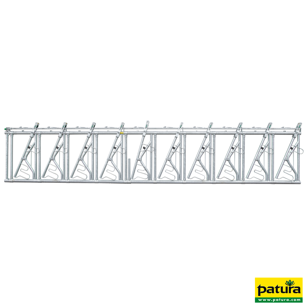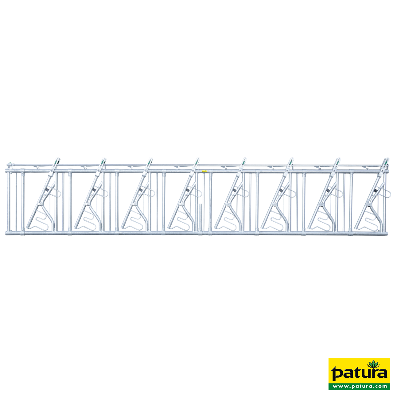 Installationshinweis: Ab 4,00 m Länge muss eine Mittelstütze (1 ¼" Rohr) (im Lieferumfang ­enthalten) in die Futtertischwand einbetoniert werden. Die Positionierung der Mittelstütze ist zu erfragen.