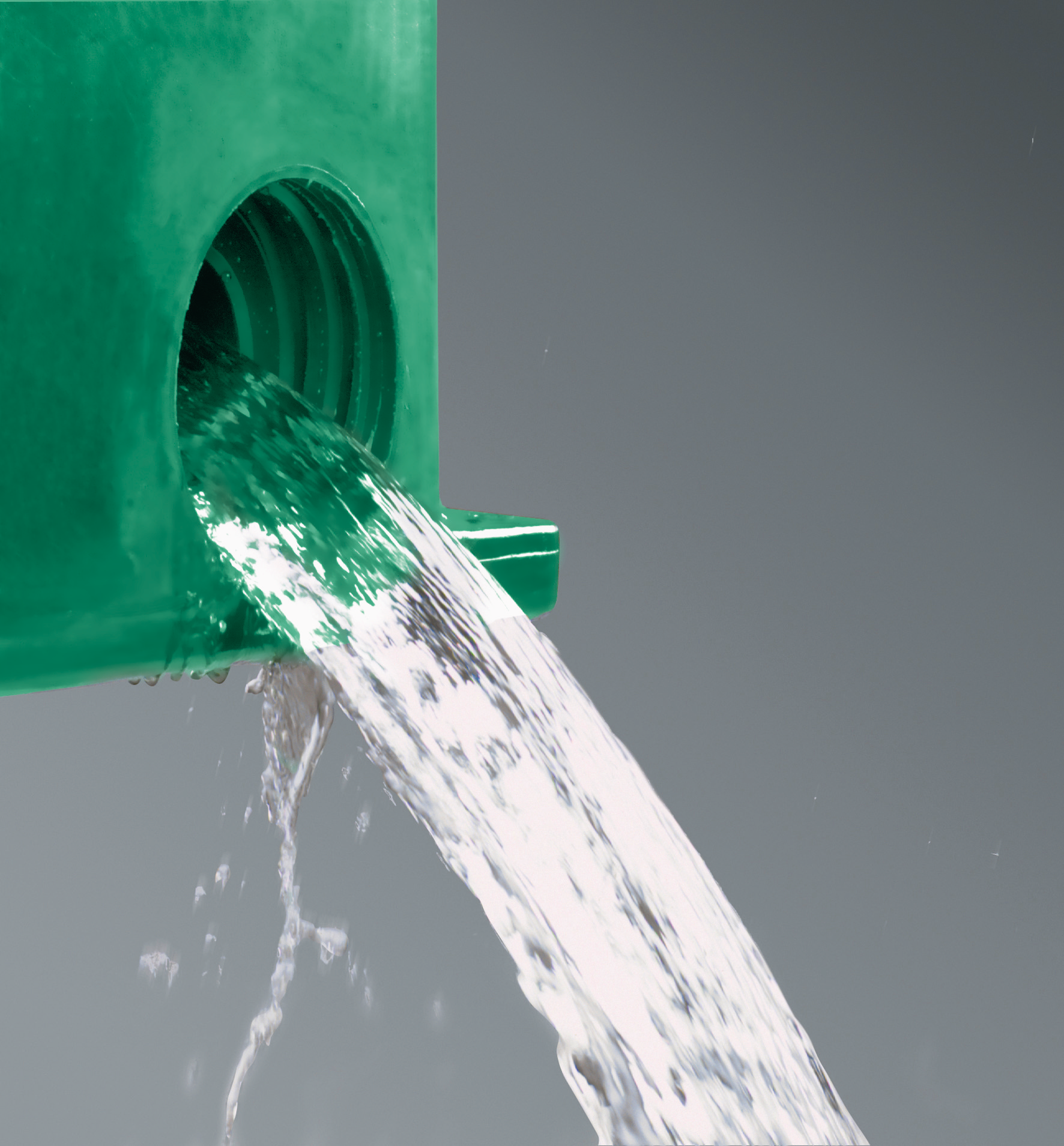 • Interner Über- und Ablaufstopfen für Ableitung des Wassers nach unten