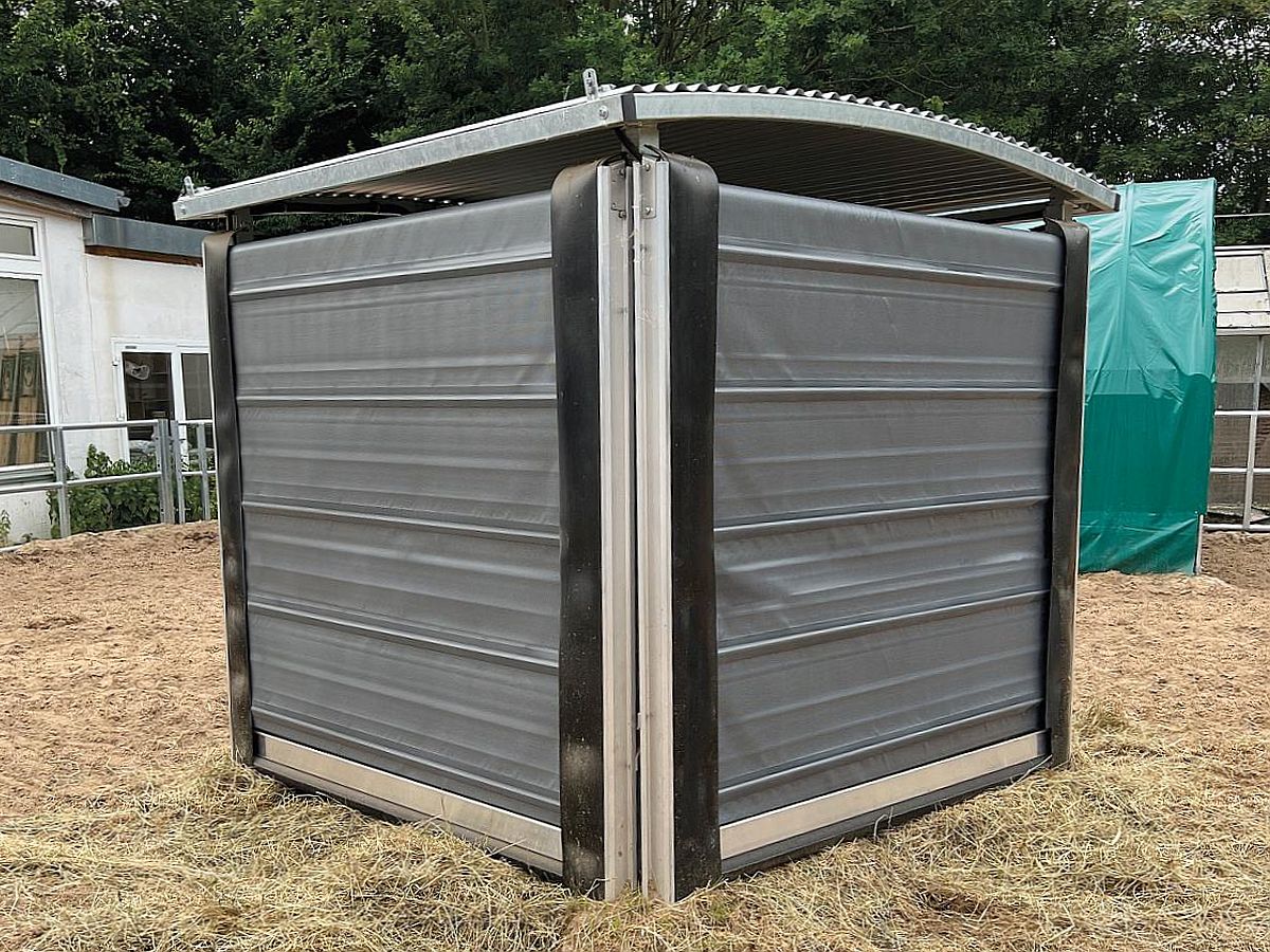 - Die Raufe bietet Platz für Rund- oder Quaderballen