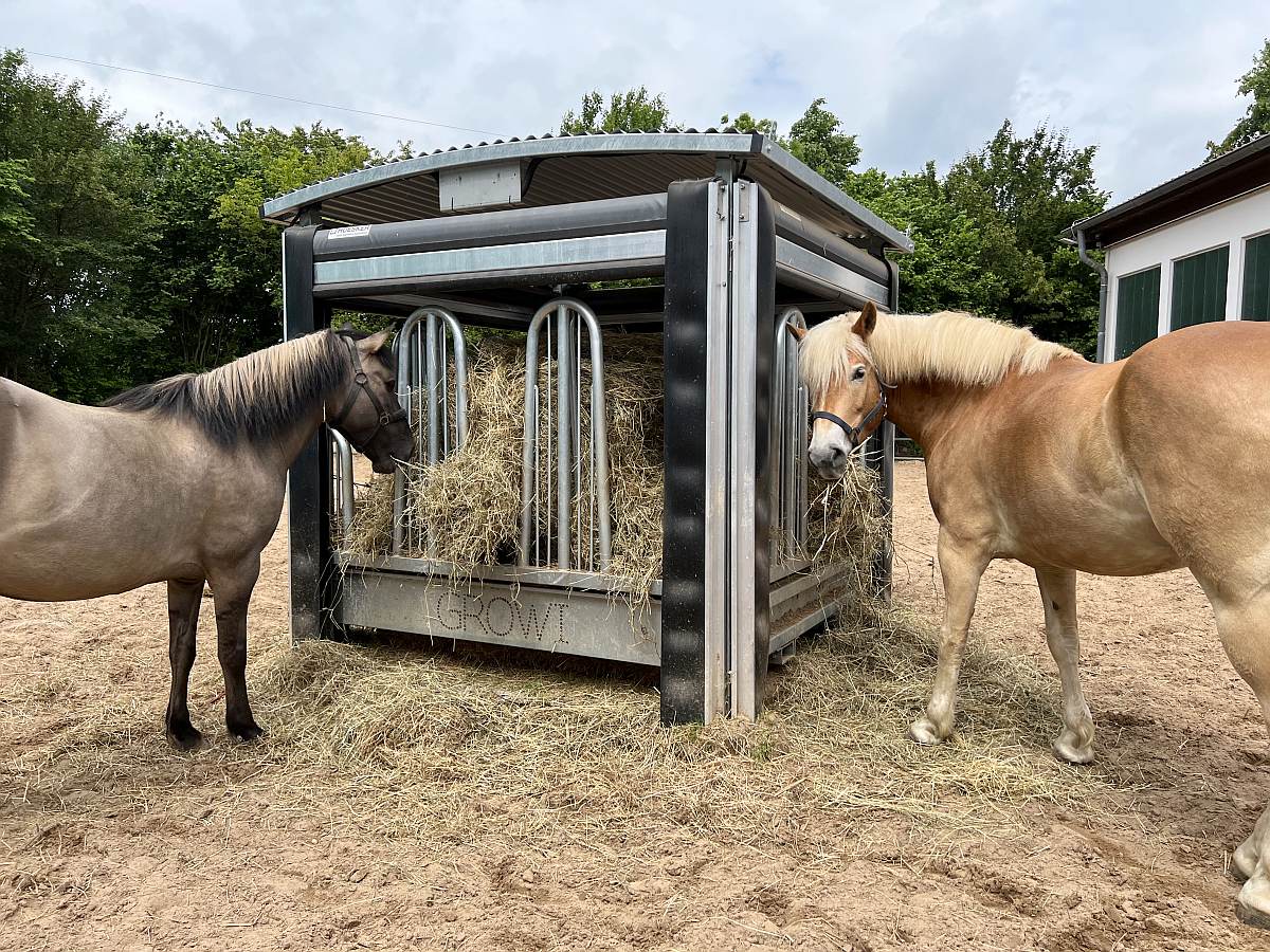 - durch die hohen Bögen des Fressgitters können die Pferde nicht hineinsteigen