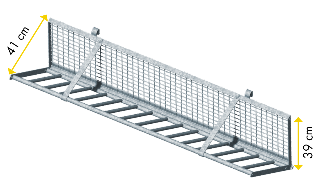 • Vorne senkrechte Fressgitter-Stäbe (lichtes Maß 63 mm)