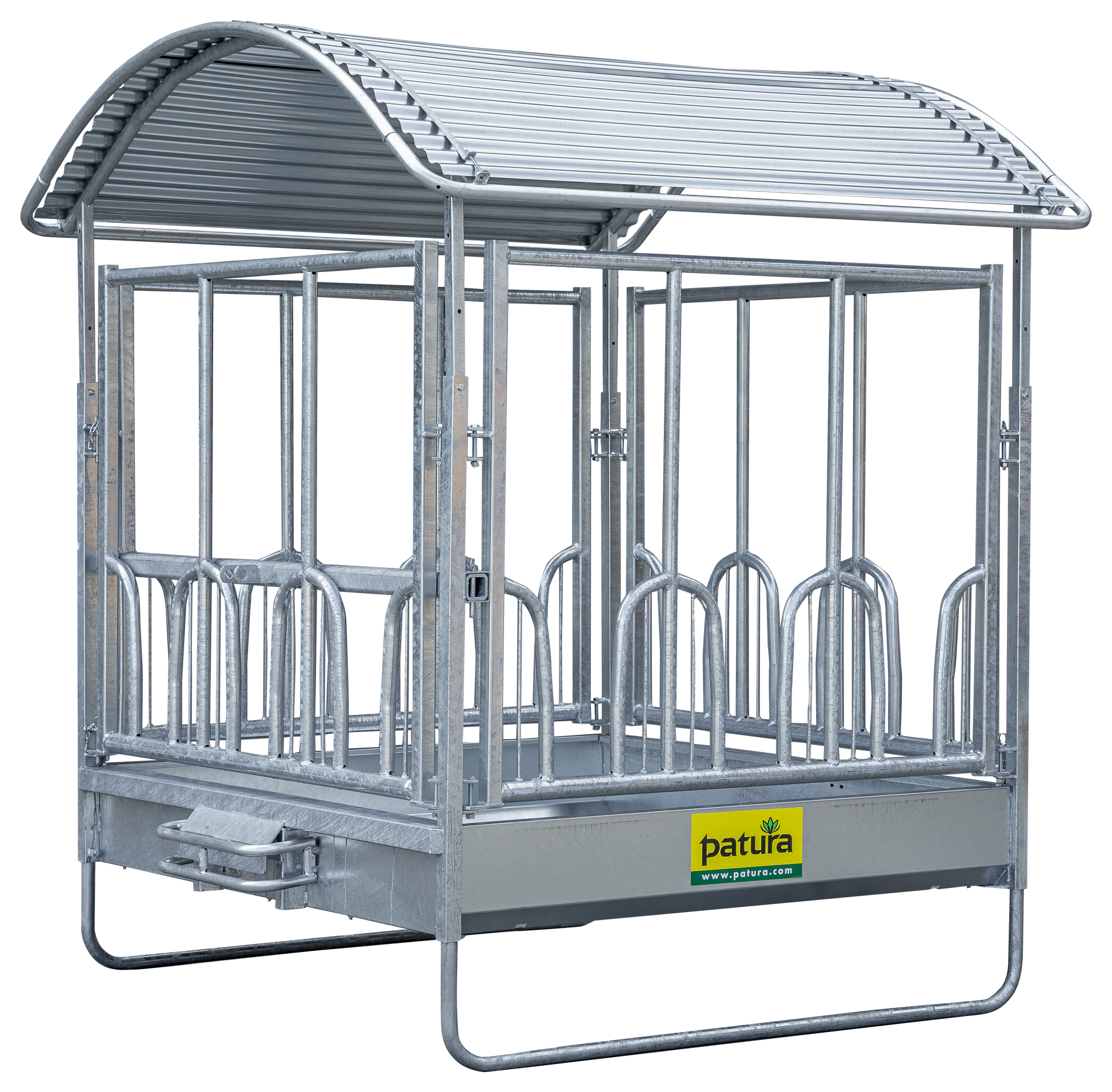 Profi-Viereckraufe mit Universalfressgitter und Dach 2,00 x 2,05 m