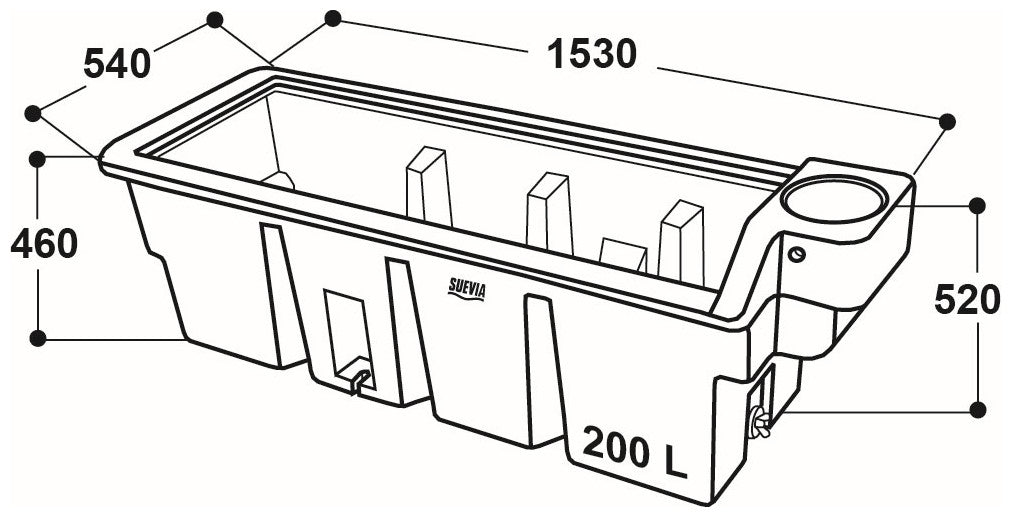 Die Weidetröge sind aus hochwertigem, UV-beständigem Polyethylen. Der Rand ist nach innen gebogen, dadurch keine Wasservergeudung. Eine große Ablauföffnung sorgt für eine schnelle, einfache Entleerung und Reinigung. Die Weidetröge gibt es von 70 l bis 1500 l mit den jeweilig passenden Schwimmerventilen (Hoch- und Niederdruck). Für Einsatz der Ventile 1310674 und 1310675 muss die Montageöffnung vergrößert werden.