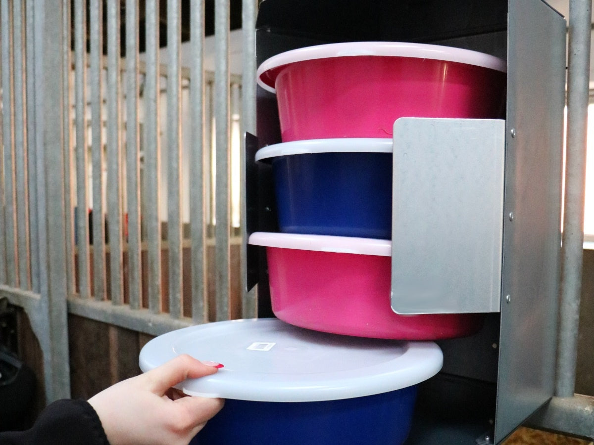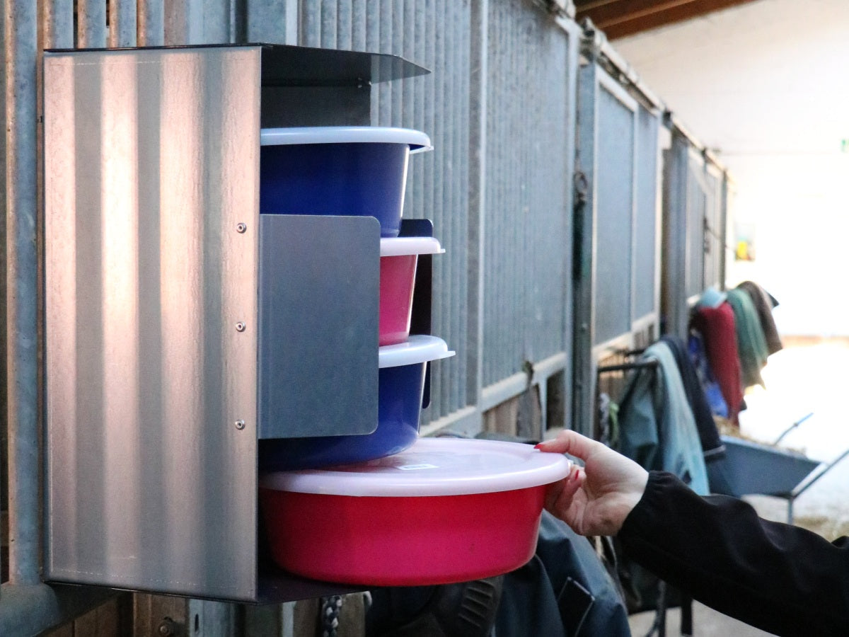 Unser praktischer Futterschüssel-Spender ist stabil und lässt sich ganz einfach direkt an der Pferdebox montieren. Damit können Sie die Futterrationen vorbereiten und direkt an der Box deponieren. Der Growi® Futterschüssel-Spender ist abgestimmt auf unsere Futterschüssel Art.-Nr. 6056 bzw. für Futterschüsseln mit 320 mm Durchmesser und einer Höhe von 100 mm.