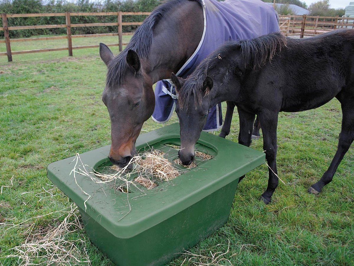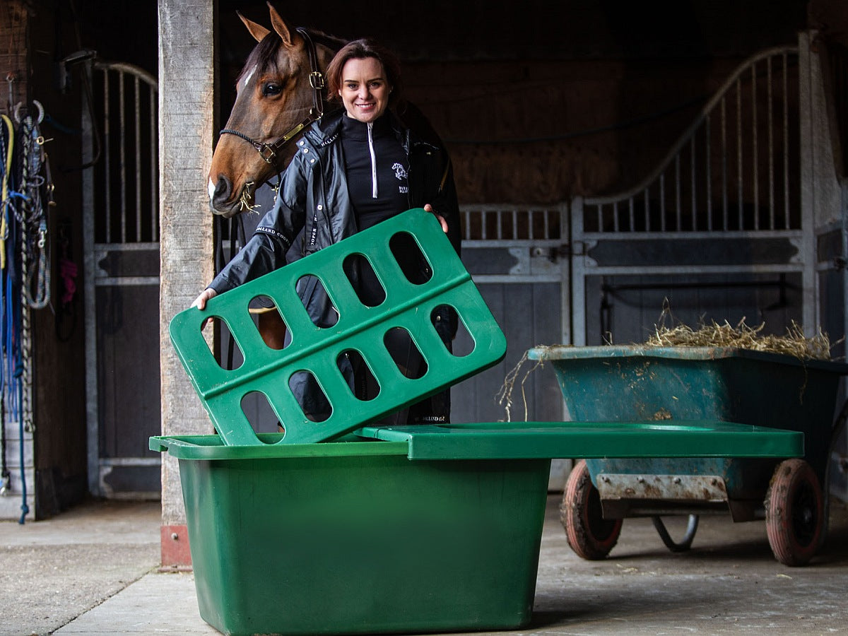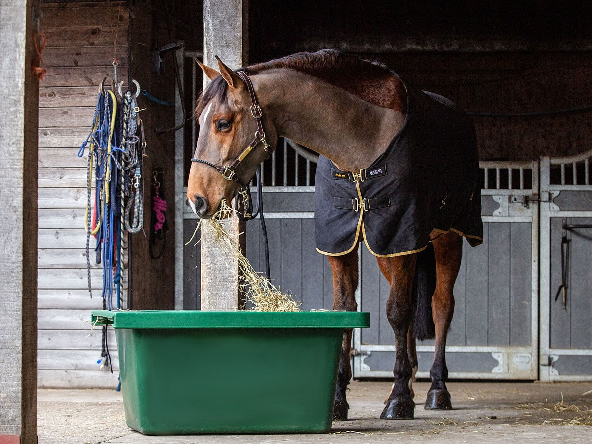 Der Growi® Koppel- und Paddocktrog ist ein robuster und frostsicherer Kunststofftrog, der sowohl als Wassertränke, zum Einweichen von Heu oder als Heuraufe verwendet werden kann. Wenn der Trog als Heuraufe verwendet wird, dann sorgt das Futtergitter für eine langsame Futteraufnahme. Die Pferde können in ihrer natürlichen Haltung fressen. Der Growi® Koppel- und Paddocktrog ist leicht und schnell zu befüllen und ausreichend für zwei Pferde.