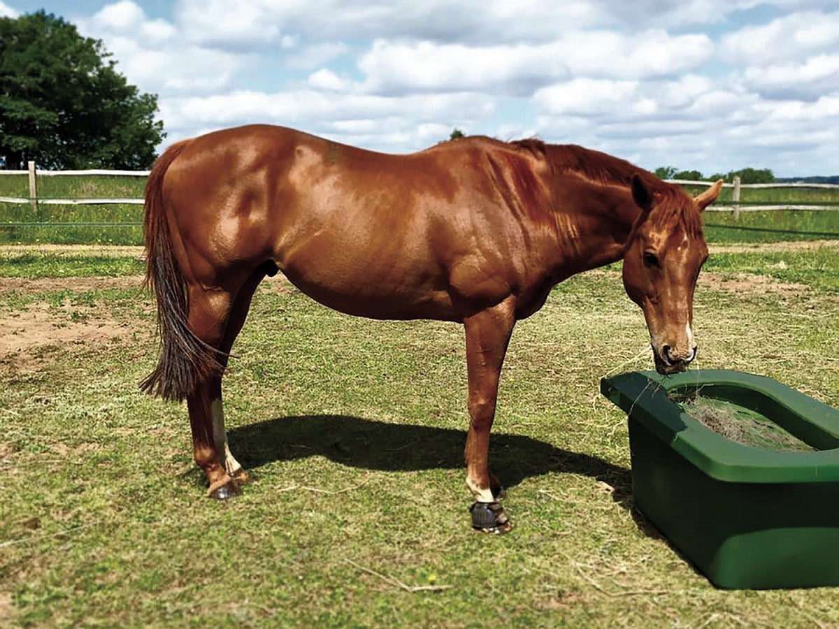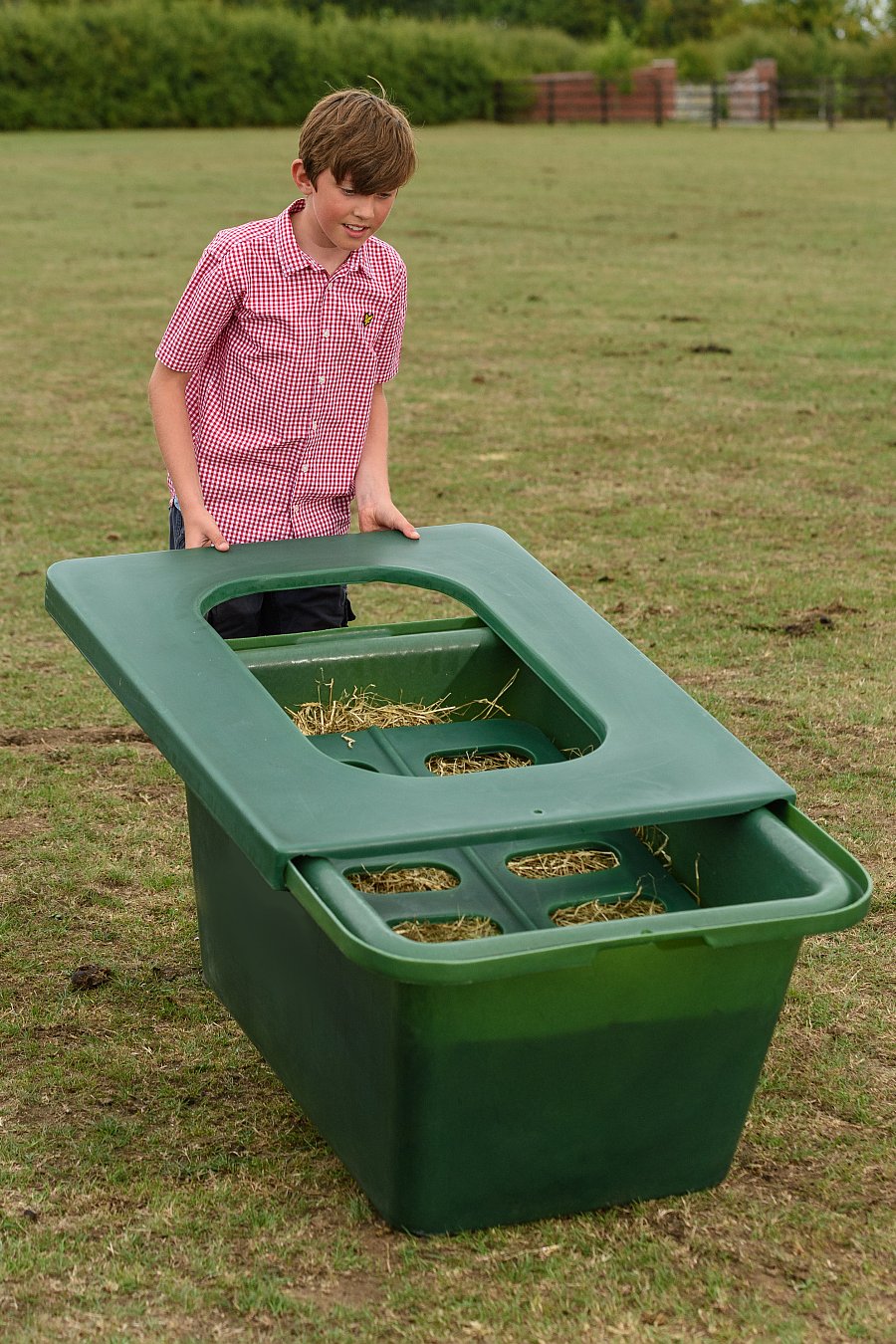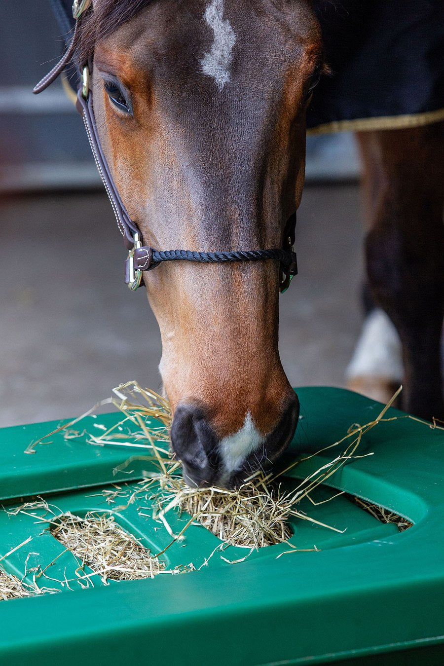 Der Growi® Koppel- und Paddocktrog ist ein robuster und frostsicherer Kunststofftrog, der sowohl als Wassertränke, zum Einweichen von Heu oder als Heuraufe verwendet werden kann. Wenn der Trog als Heuraufe verwendet wird, dann sorgt das Futtergitter für eine langsame Futteraufnahme. Die Pferde können in ihrer natürlichen Haltung fressen. Der Growi® Koppel- und Paddocktrog ist leicht und schnell zu befüllen und ausreichend für zwei Pferde.