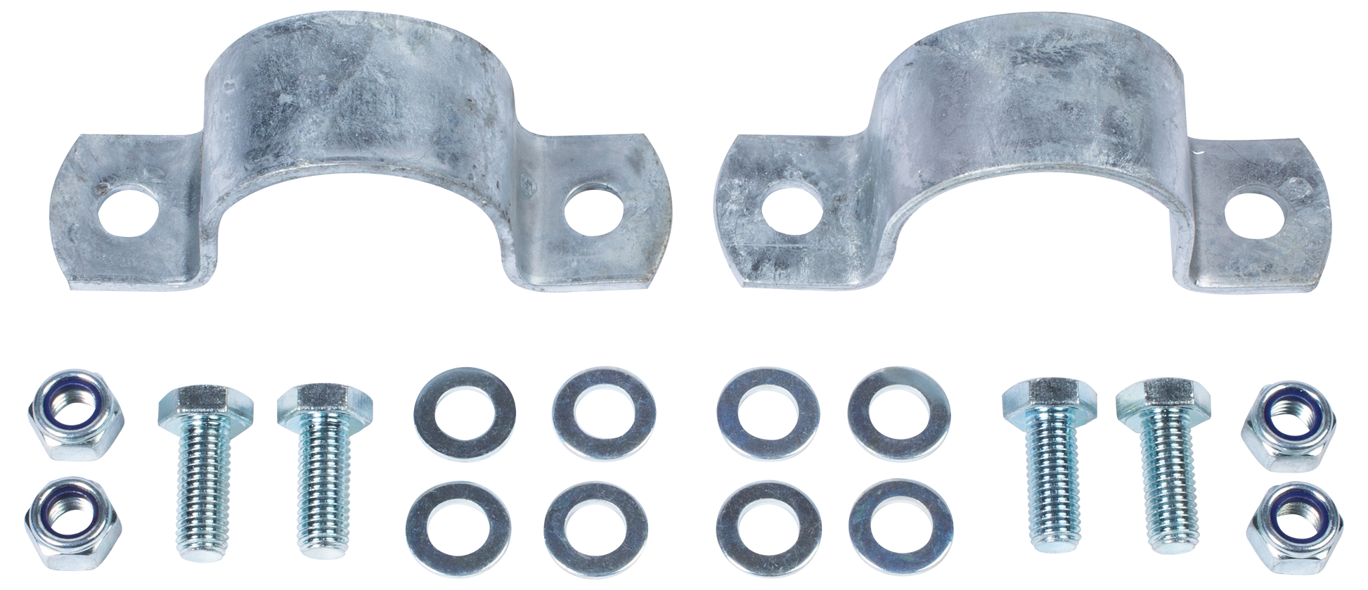Montageset Scheuerblech an Rohr Ø 60 mm, bestehend aus 2 x Vollschellen, Schrauben, Muttern