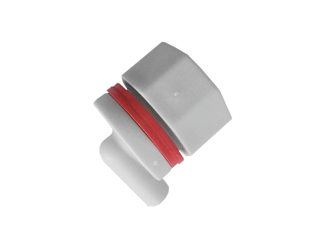 Graues Ventil mit Dichtung für Kälbertränkeeimer.