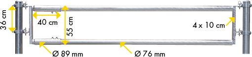 • Hinweis: Die Tiere fressen unter dem unteren Rohr hindurch; es ist unbedingt eine Futtertischwand erforderlich