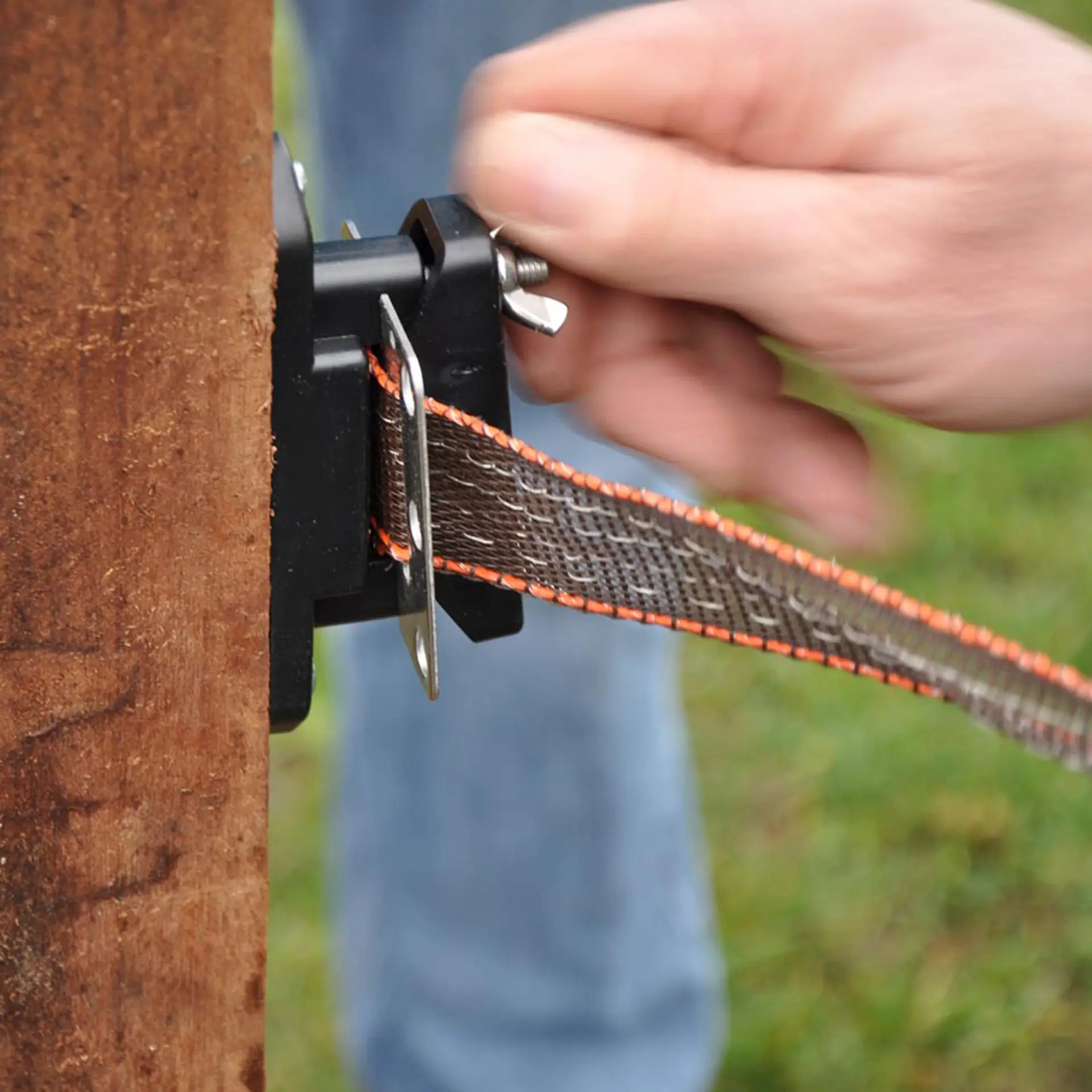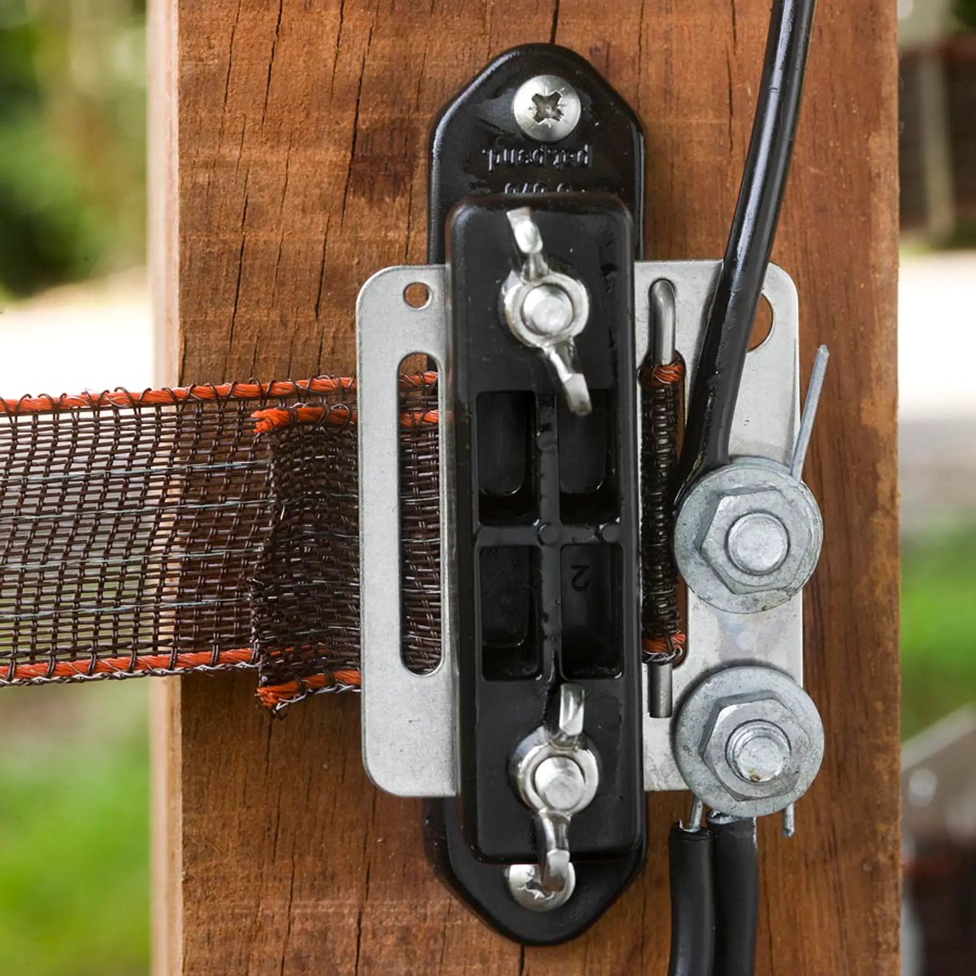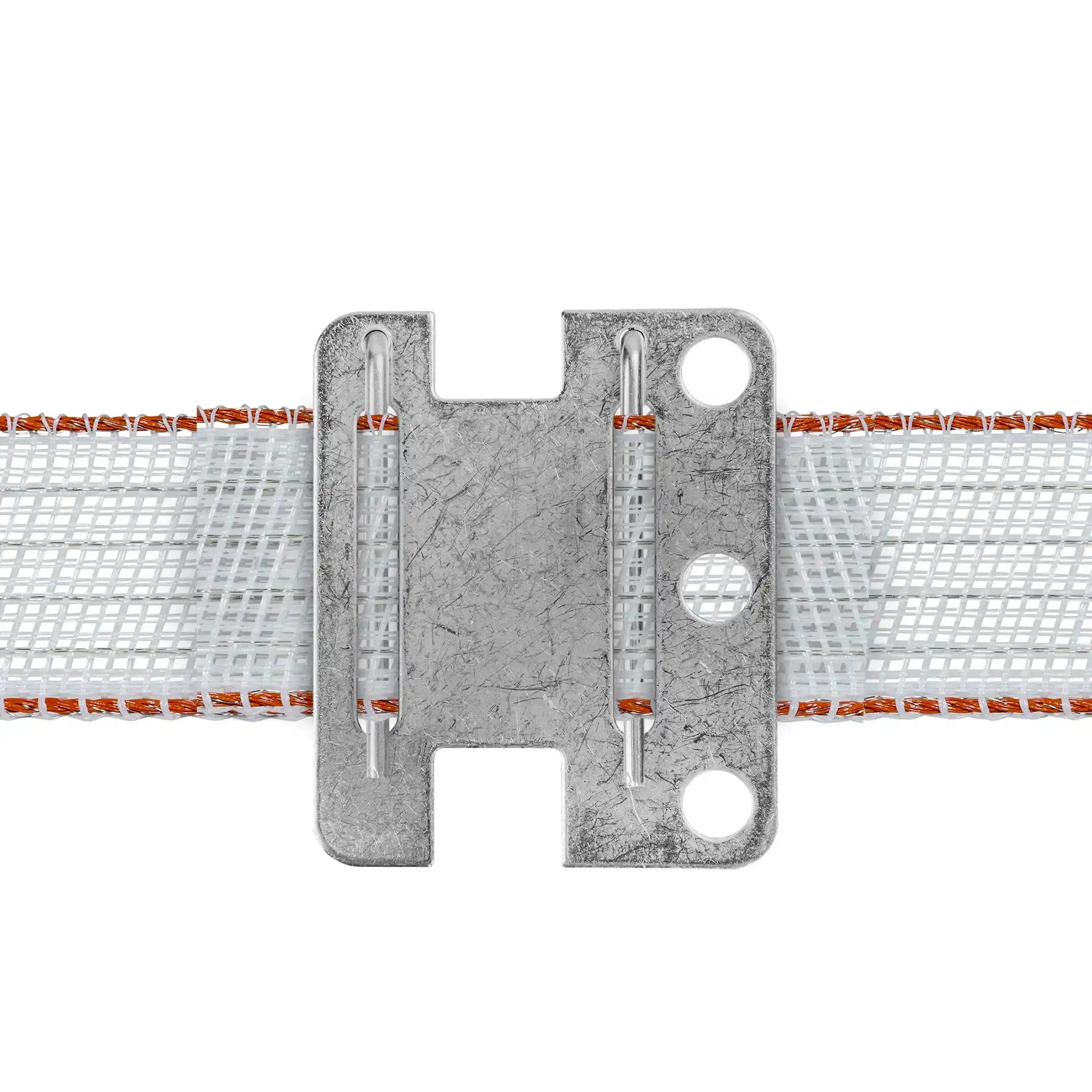 Mit diesem Breitbandverbinder können Sie sowohl 20 als auch 40 mm Breitband in Ihrer semi- permanenten Einzäunung verbinden. Edelstahl garantiert eine lange Lebensdauer! Dieser Breitbandverbinder gewährleistet eine gute Leitfähigkeit. Einfaches Verknoten verursacht häufig Störungen und Stromverlust und ist daher keine gute Alternative. Es gilt eine Produkt- Garantie von 2 Jahren.