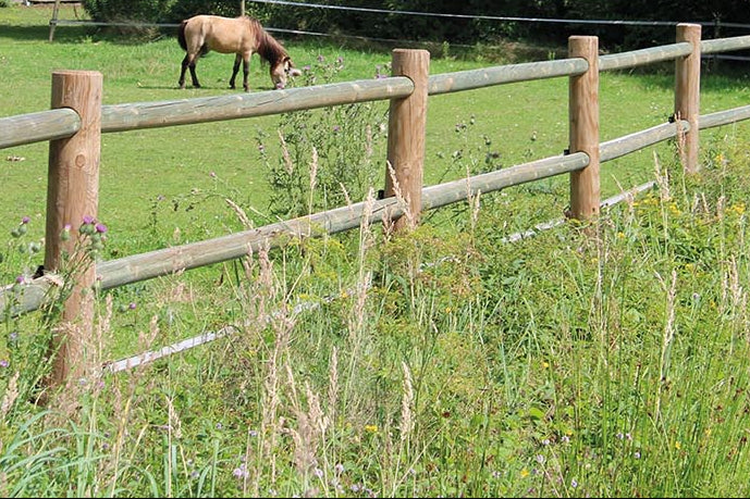 Growi® Koppelzaunsysteme werden aus nordischem Kiefernholz produziert. Dieses Holz zeichnet sich durch sehr langsames Wachstum aus. Es hat wesentlich kleinere Wachstumsringe als heimische Kieferarten. Kiefernholz lässt sich sehr gut imprägnieren und ist somit widerstandsfähiger als z.B. Fichte oder Tanne. Growi®-Koppelzaunsysteme werden alle nach der zertifizierten Imprägnier-Klasse IV behandelt.