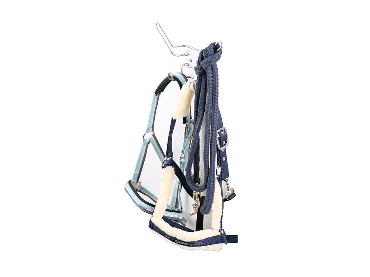 Dieser aus Edelstahl gefertigte Halter kann an an eine Wand oder im Schrank befestigt werden und bietet eine sichere Ablage für Stricke.