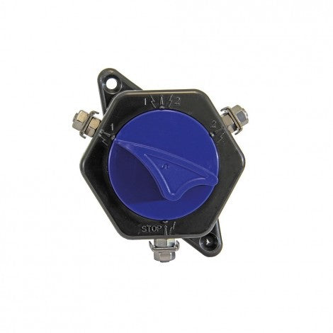 Wenn Sie mehrere Zaunanlagen an ein Gerät angeschlossen haben, schalten Sie Ihren elektrischen Weidezaun direkt an der Zaunanlage ein und aus. Je nach Drehung des Schalters können Sie Weide 1, Weide 2, oder beide Weiden ein-, bzw. den Strom ausschalten.
