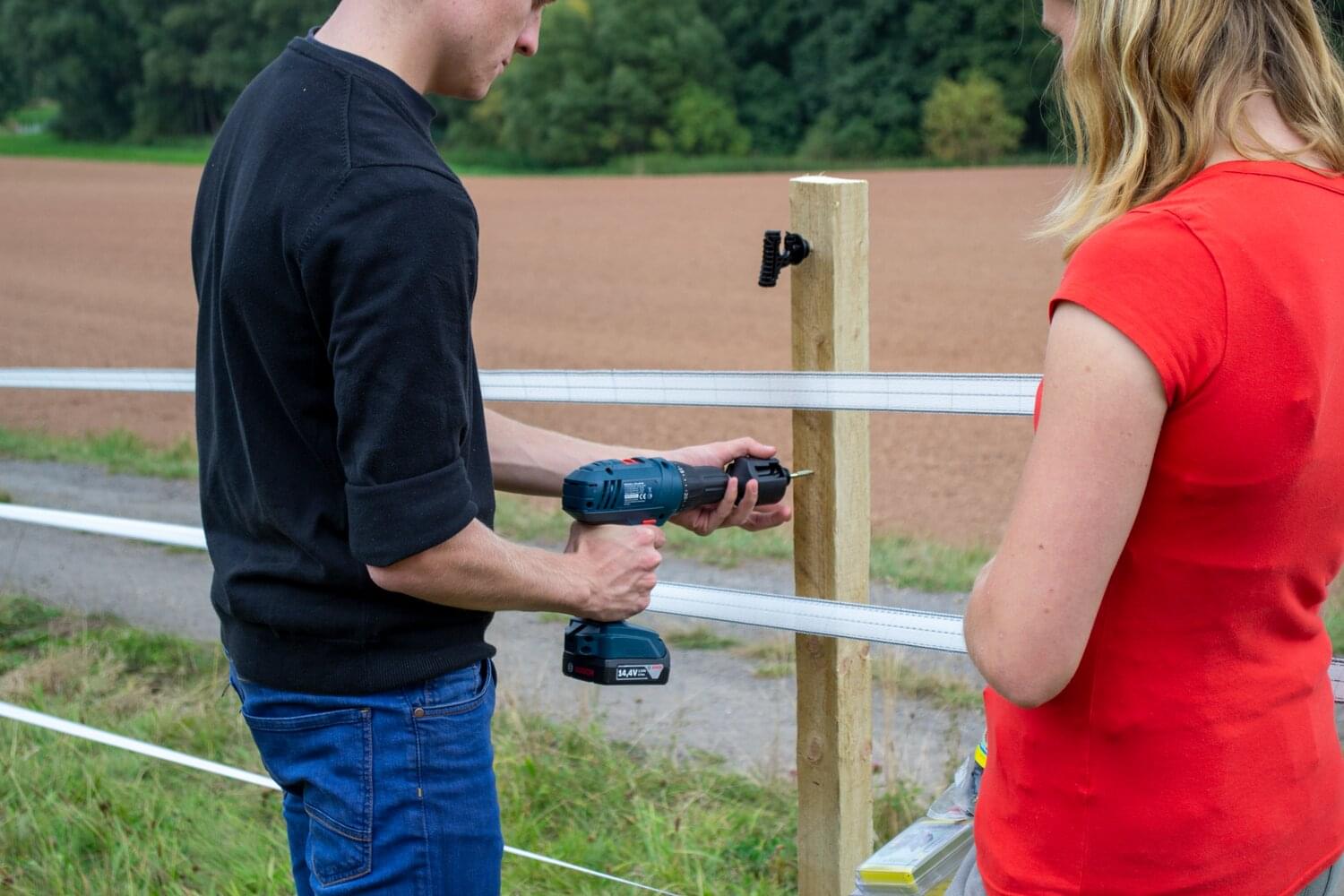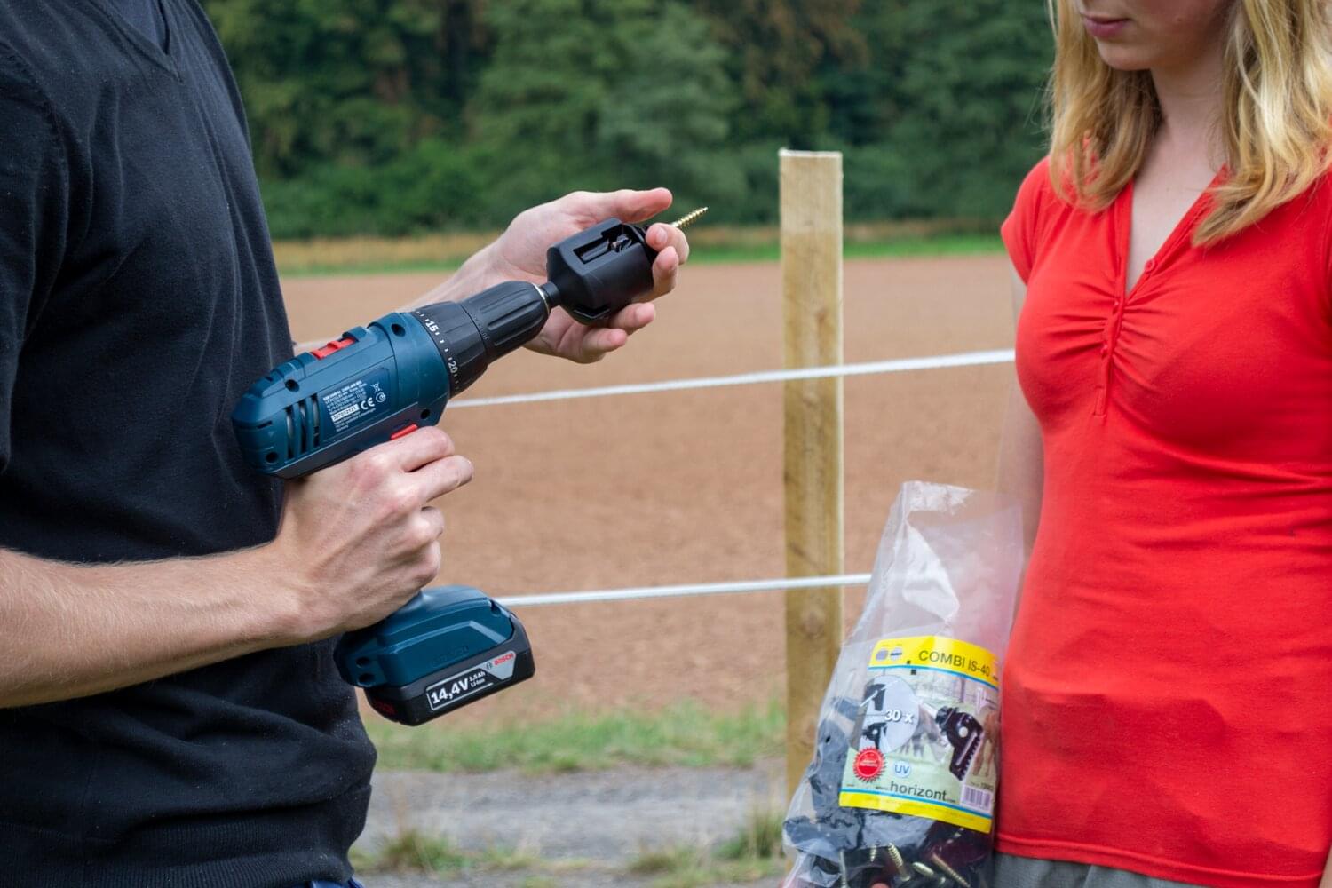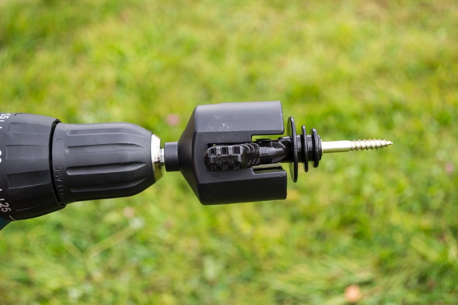 Dank der vorteilhaften Konstruktion können Sie die Einschraubhilfe mit Ihrer Bohrmaschine oder Ihrem Akkuschrauber verwenden und sich sehr viel Zeit und Mühe beim Zaunbau ersparen.