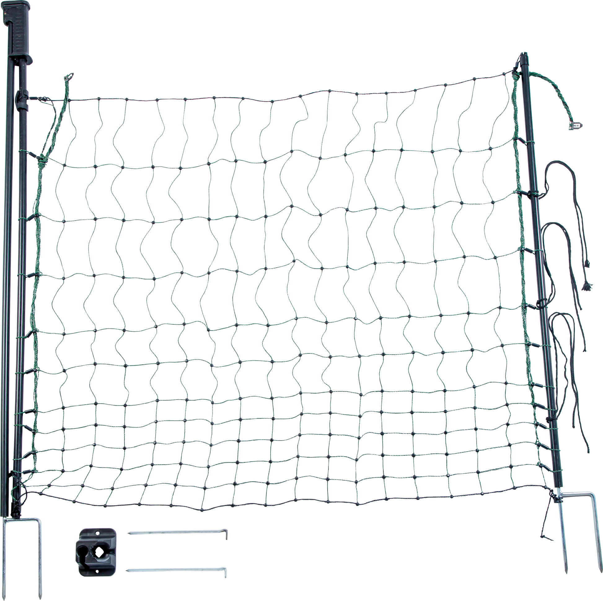 Das besonders große Tor für Elektrozaunnetze lässt sich schnell und einfach auch an bereits aufgestellten Zäunen integrieren – unabhängig vom verwendeten Netz. Die leitfähigen Materialien ermöglichen die Elektrifizierung des Tores und erhöhen somit die Hu?tesicherheit. Dank der Öffnungsbreite von 1,20 m und des isolierten Griffes ist der Zugang sicher und unkompliziert, da nicht zuerst das Weidezaungerät abgeschaltet werden muss. Das Tor ist aufgrund der engen Maschenweiten auch bestens fu?r Geflu?gel geeignet.
