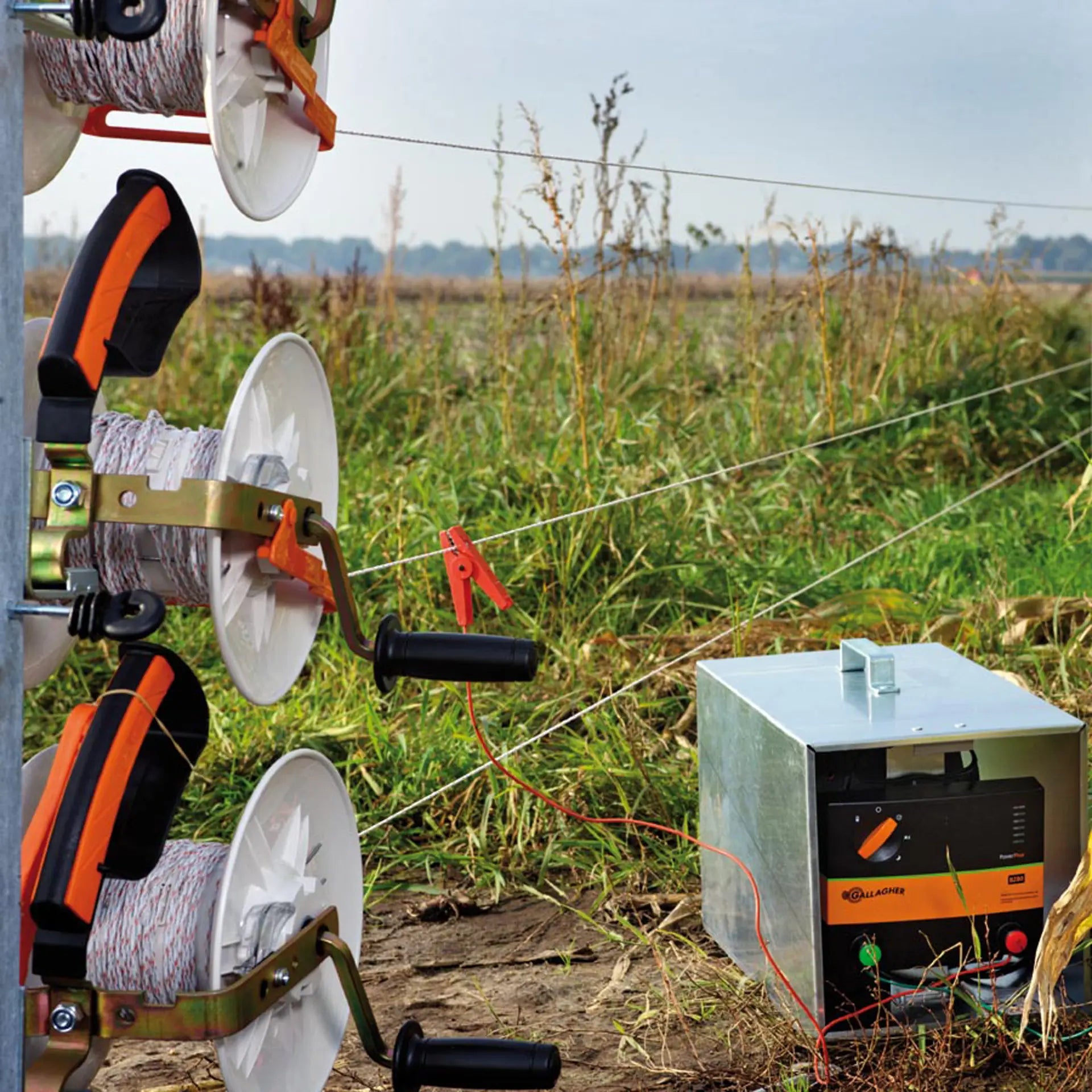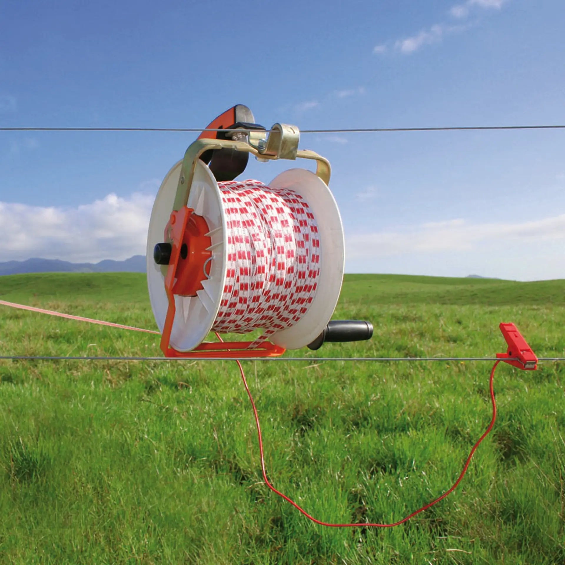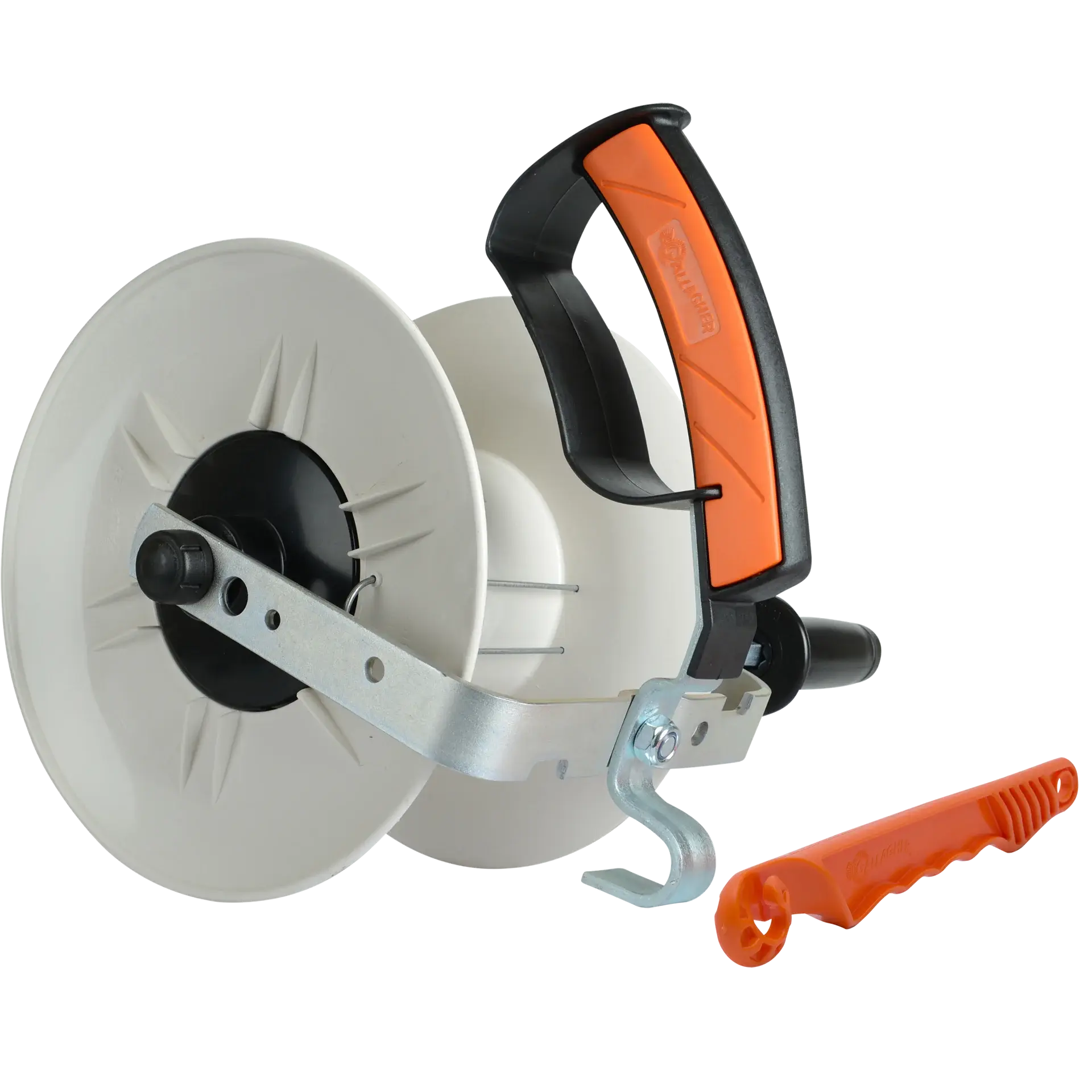 Diese robuste Haspel hat einen besonders großen Innendurchmesser für schnelles Auf- und Abrollen. Geeignet für höchstens 500 Meter Vidoflex, 200 Meter Breitband oder 200 Meter Cord. Die Haspel verfügt über eine Arretierung, eine austauschbare Trommel und einen ergonomischen und robusten Griff. Zur Befestigung an einem Haspeleckpfahl