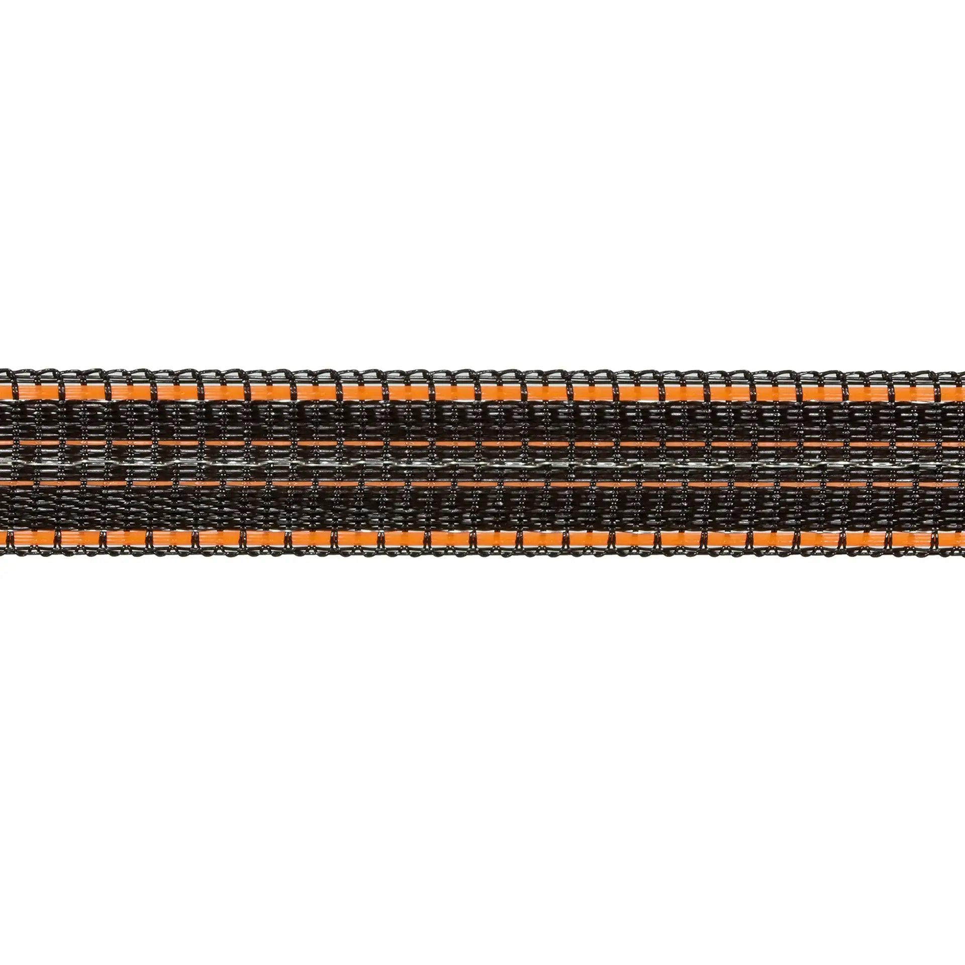 Das Turboline 20mm Band ist zudem mit einem Randdraht an der Ober- und Unterseite verstärkt. Dies verringert die Wahrscheinlichkeit von Rissen bei Beschädigungen und sorgt für weniger Dehnung, wodurch das Band im gespannten Zustand länger straff bleibt und weniger Wartung benötigt. Ein gestrafftes Band ist weniger windanfällig und belastet die Pfähle und Isolatoren am wenigsten.