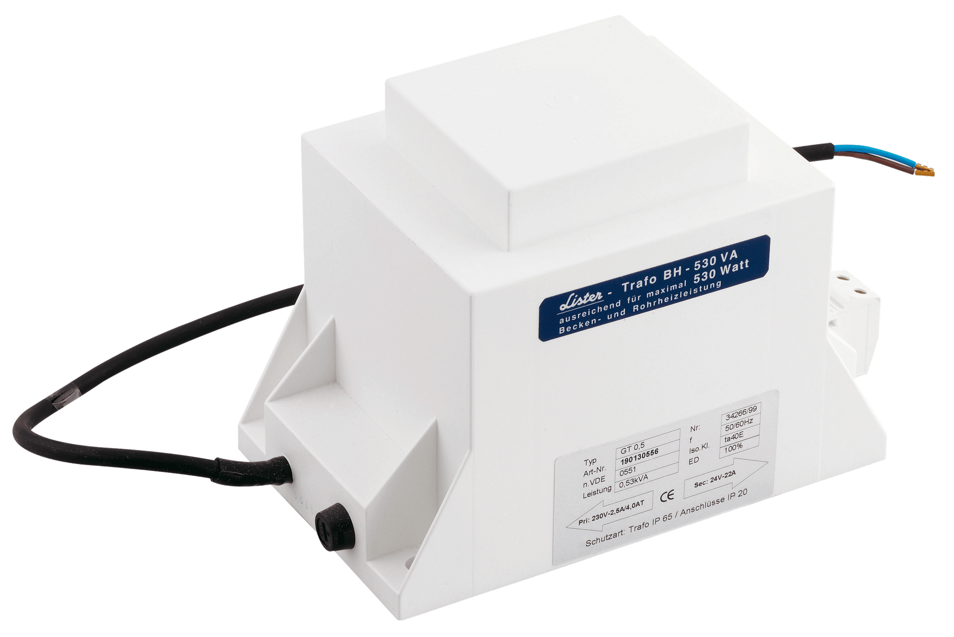 230 Volt / 24 Volt Wechselstrom Die Leistungsstärke der Trafos richtet sich nach der Anzahl und den Leistungsdaten der Tränken. Mit Thermoschalter gegen Überlastung, Überhitung und Feinsicherung. Die Anschlusslänge vom Trafo bis zur letzten Tränke darf 12 Meter nicht überschreiten.