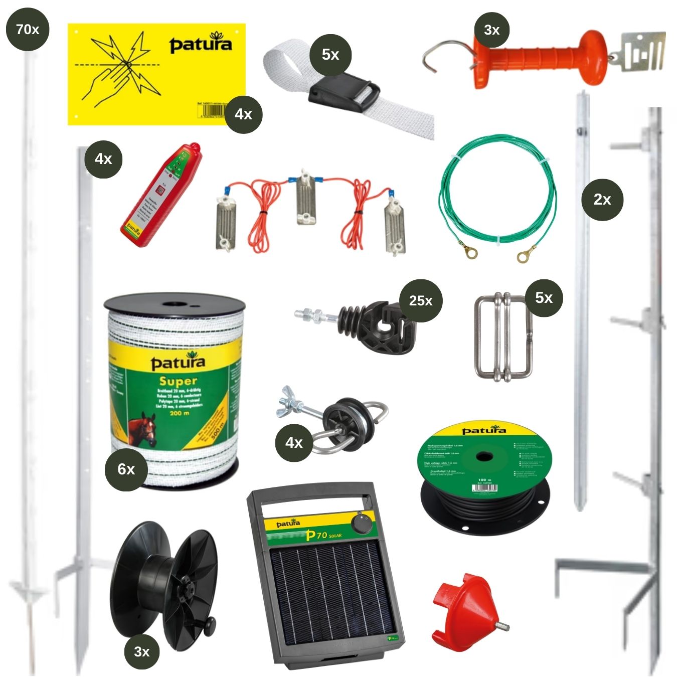 400 m Pferde-Weidezaun-Komplettpaket für bis zu 1 Hektar Fläche - Kunststoffpfahl 1.55m · Breitband · Solar Weidezaungerät