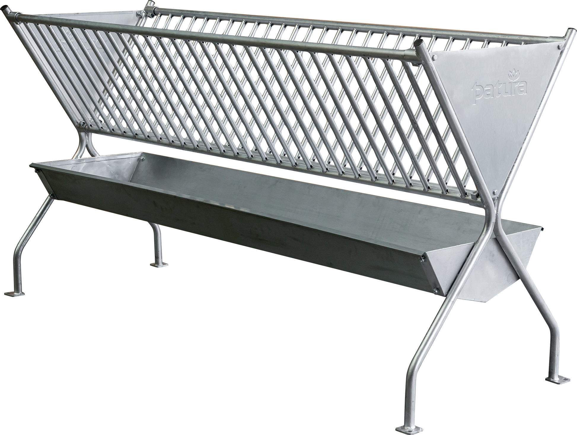 Für die Heufütterung an Schafen bietet PATURA verschiedene Möglichkeiten. Die Heudoppelraufe bietet die Möglichkeit gleichzeitig Heu und Kraftfutter zu verfüttern.