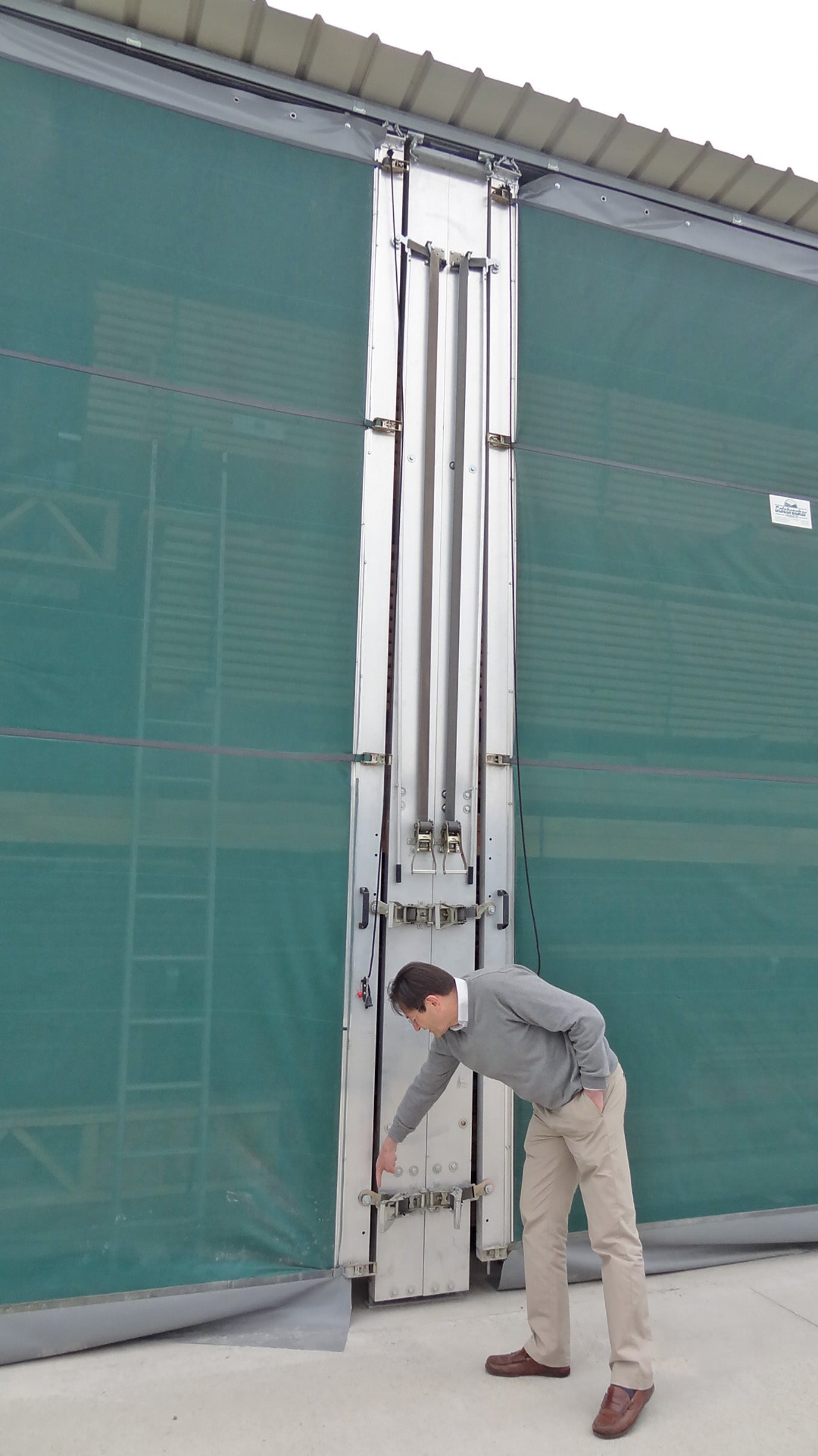 Alle Netze sind mit eingeschweißten Spanngurten (25 mm x 2000 kg) versehen. Die Anzahl der Gurte beträgt 2 Stück (2,00 m Höhe), 3 Stück (bis 4,00 m Höhe), 4 Stück (bis 5,00 m Höhe). Der untere Spanngurt endet 75 mm über dem Boden; die Breite der Bodenabschlusslippe beträgt 35 cm. An der freien Seite sind zum Öffnen für Tore bis 3,00 m Höhe 2 Spannratschen (50 mm x 5000 kg) und bei Toren über 3,10 m Höhe 3 Spannratschen angebracht.