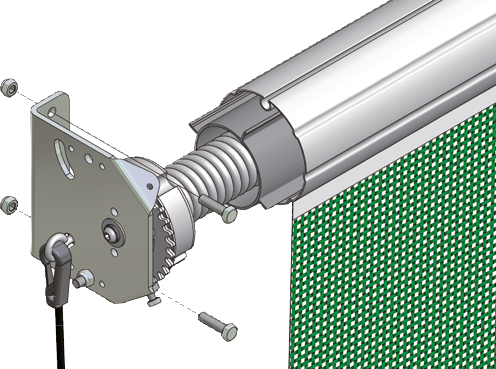 Hinweis: die Rückzugsfeder verfügt über hohe Zugkräfte. Vergewissern Sie sich beim Bedienen des Zugrollos, dass sich niemand in der Nähe des unteren Rohres befindet. Wenn die Rückzugsfeder ersetzt werden muss, stellen Sie sicher, dass die Halteschraube für die Feder eingedreht ist, bevor Sie die alte Feder herausziehen.