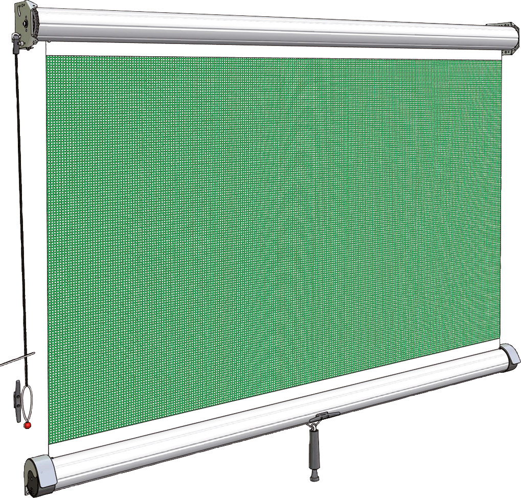 Die Breite und Höhe des bestellten Zugrollos gibt die Abmessungen des eigentlichen Netzes an. Die Rohre sind 100 mm länger als die Netzbreite (50 mm auf jeder Seite). Bei Zugrollos sitzt der Federmechanismus immer links. Die Durchfahrtshöhe reduziert sich um 100 mm.