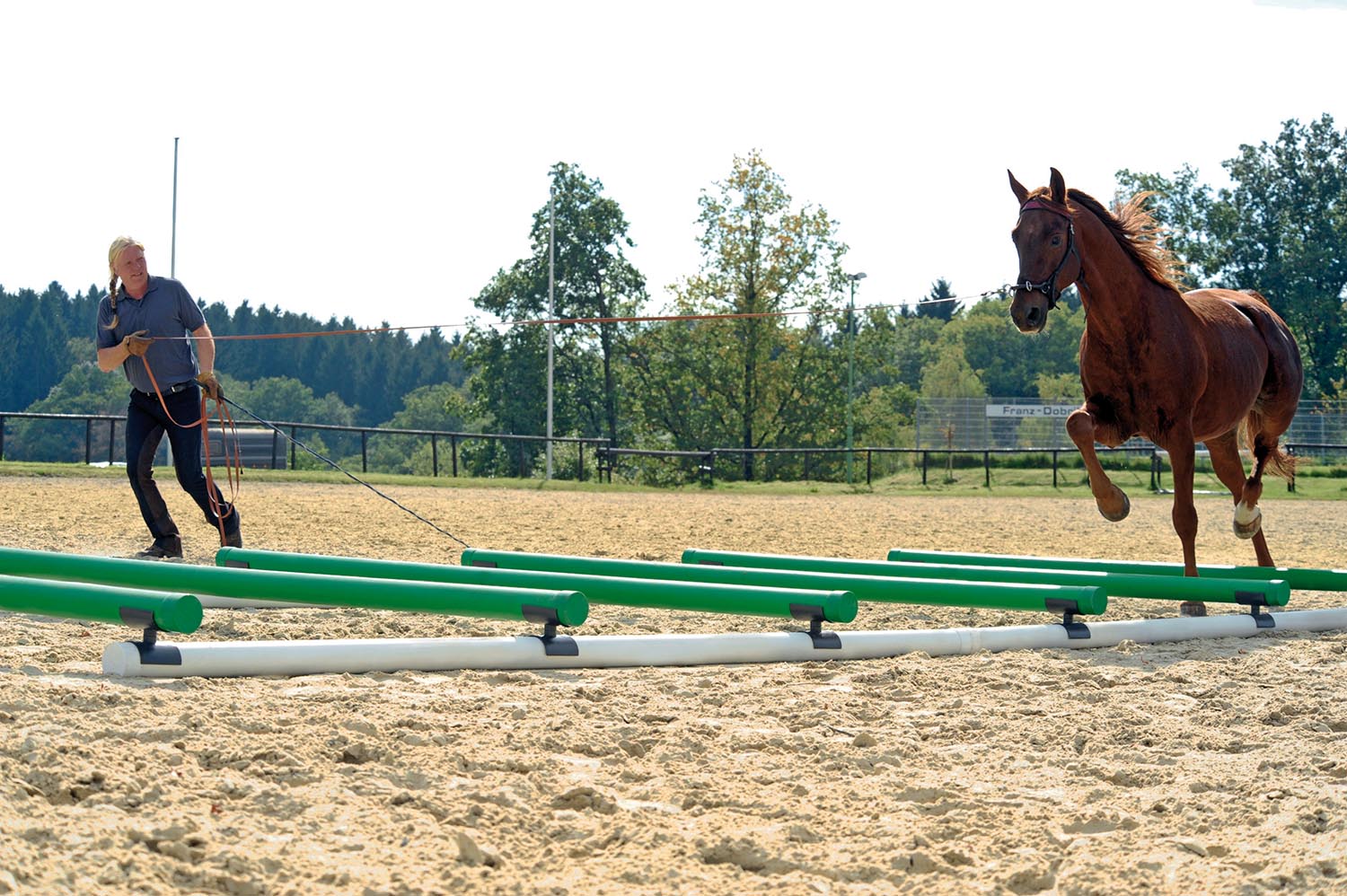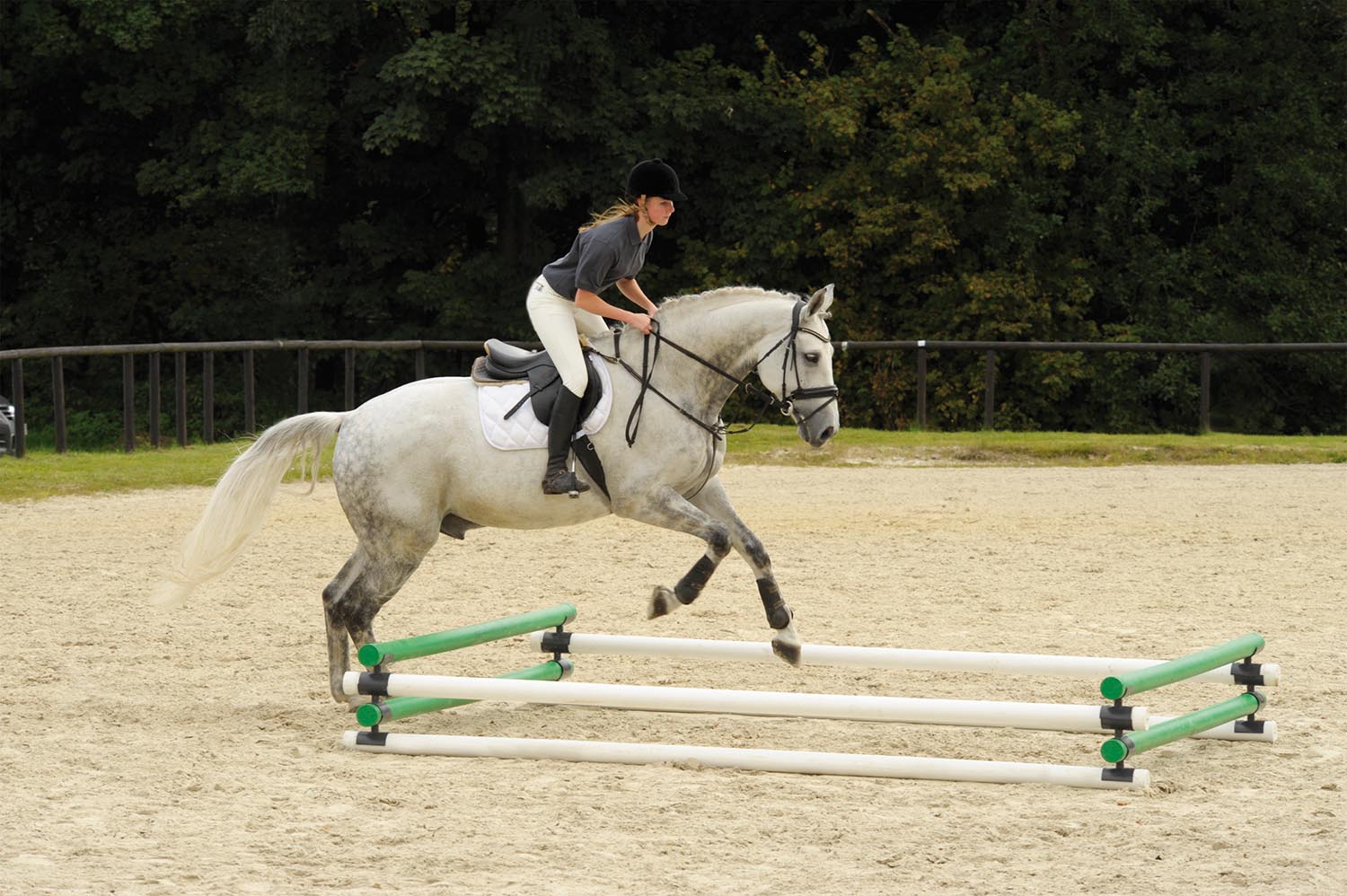 Mit WingX die Pferde bei der Stange halten! Das WingX-System besteht aus einem Set mit 12 Cavalettistangen-Aufsätzen, die eine Erhöhung von insgesamt 6 Stangenermöglichen. Die stabilen Stangenerhöhungen fördern ein abwechslungsreiches und gymnastizierendes Training der Pferde.Die Stangen werden fixiert, ohne dass eine Verletzungsgefahr für die Pferde entsteht. Dabei sind sie robust, UV-beständig undfrostsicher und es besteht eine Garantie von 3 Jahren. Die einfache Handhabung und geringe Grösse machen sie gemeinsam mit den vielfältigenAufbaumöglichkeiten zu perfekten Begleitern im täglichen Training. Die WingX-Aufsätze können auf Stangen mit einem Durchmesser von 93 bis 100 mm gesteckt werden undbringen die Stangen auf eine Höhe von 24 cm. Es können beliebig viele Stangenaufsätze übereinandergesetzt werden, sodass sich bei zwei Aufsätzen übereinander eine Höhe von 48 cm ergibt.