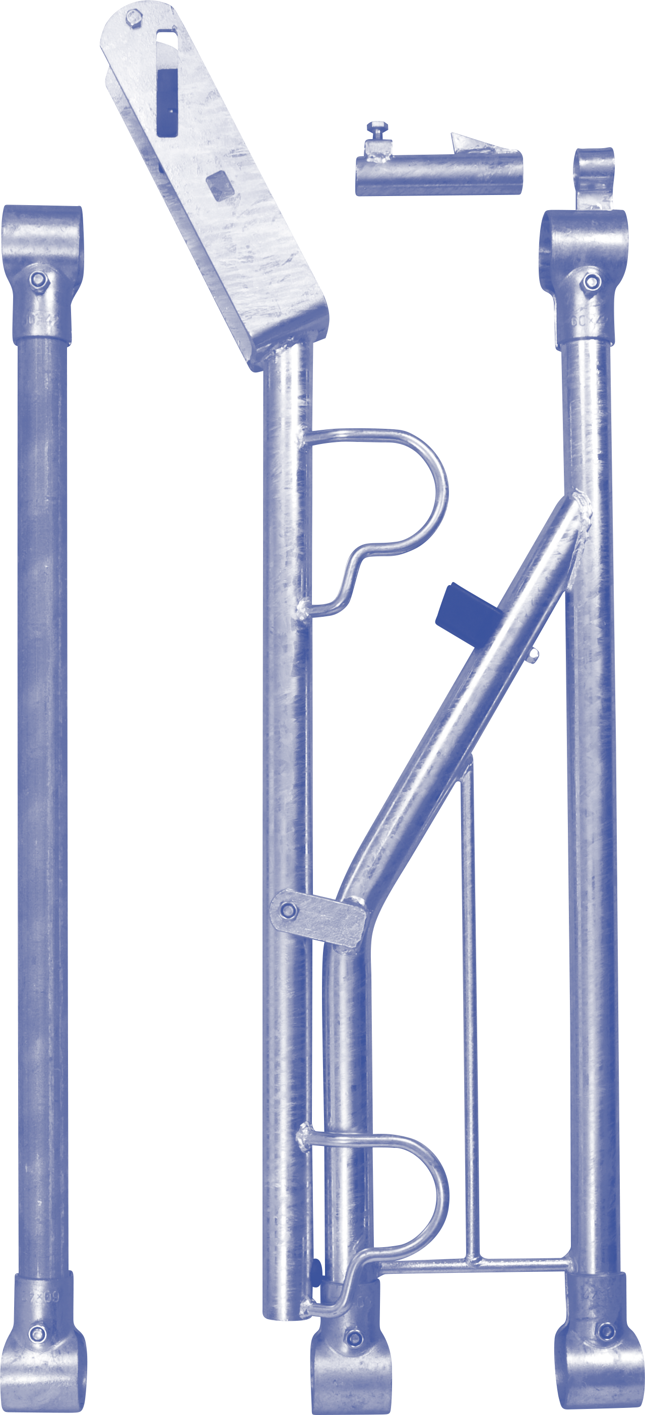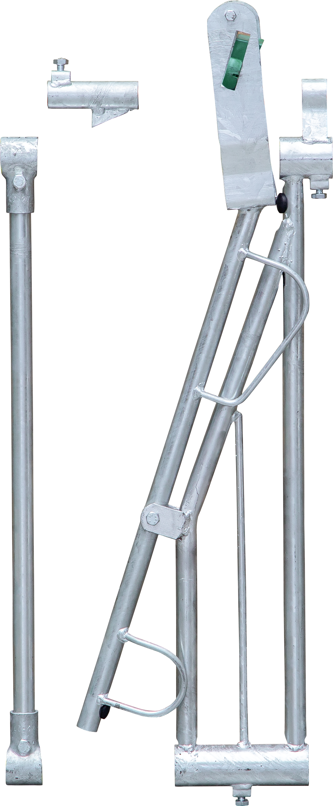 • Mit Fangbügel, Arretierungsanschlag und Zwischenstange mit Schellen