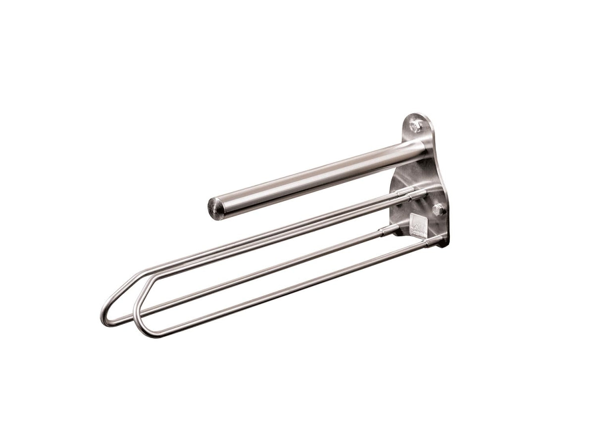 Das Besondere: hierzu muss nicht einmal die Decke vom Sattel gelöst werden. Die Handhabung ist denkbar einfach. Zum Ablegen wird die Decke einfach auf die unteren Bügel fallen gelassen und gleichzeitig der Sattel auf die obere Ablage geschoben. Das geht schnell und einfach. Mit dieser Art der Lagerung bleibt die Form der Polster erhalten, da alle Polsterungen völlig frei liegen. Die Funktionalität sowie die Edelstahlausführung in V2A unterstreichen die besondere Qualität des hochwertigen Sattelhalters. Abmessungen: 170 mm Höhe x 95 mm Breite x 500 mm Tiefe.