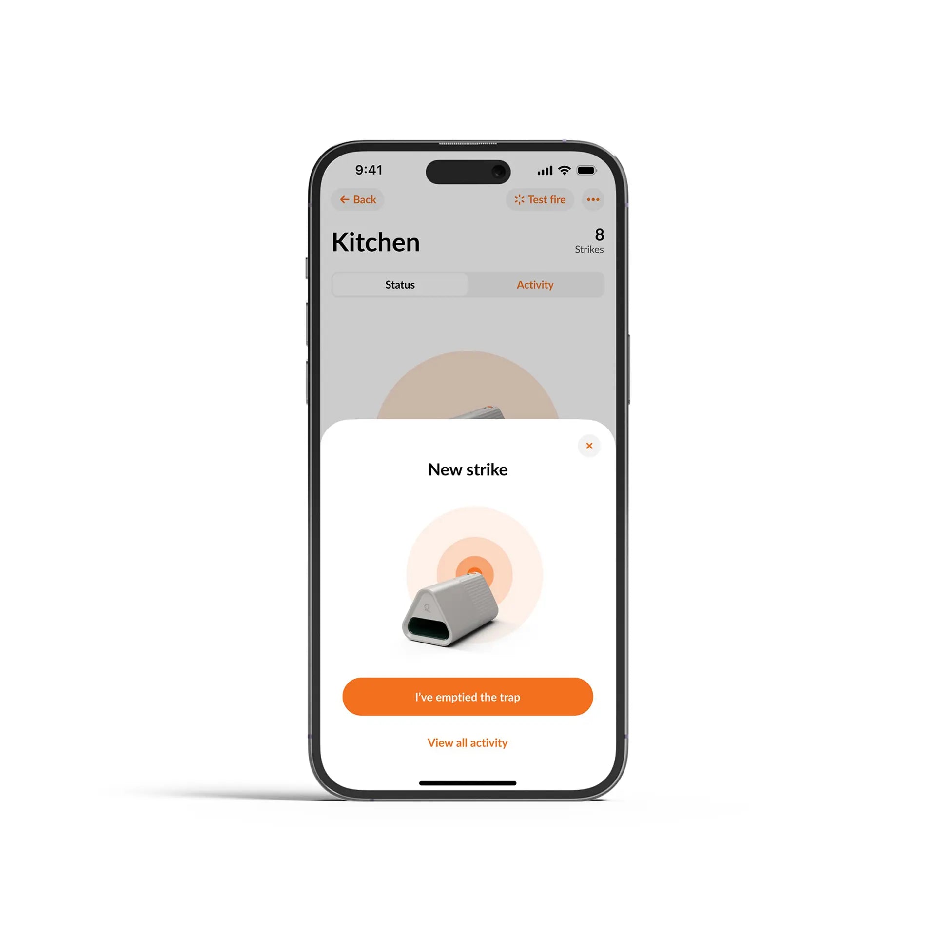 Über Bluetooth meldet die Falle Fänge, Batteriestand und erinnert an Köderwechsel direkt an Ihr Smartphone – so wissen Sie, dass die Falle arbeitet, ohne sie täglich kontrollieren zu müssen.