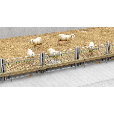 Im unteren Bereich des Fressgitters befindet sich eine stabile Kunststoffverkleidung, die das Verletzungsrisiko deutlich senkt. Diese Verkleidung verhindert, dass sich Tiere unter dem Gitter hindurchzwängen oder an scharfen Kanten verletzen. Dadurch entsteht ein sicherer Fressbereich, der den Anforderungen der Lämmerhaltung entspricht.