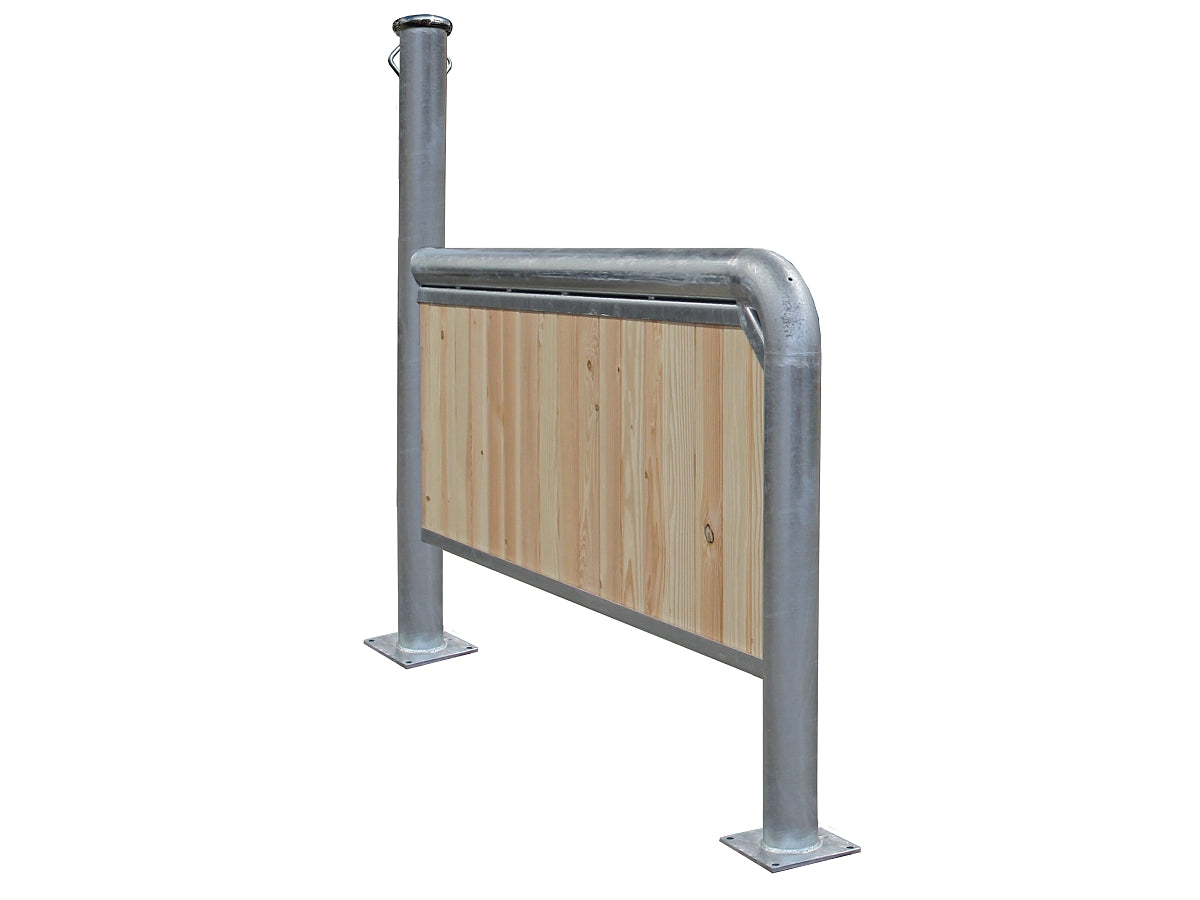 102 mm Rundrohr, feuerverzinkt, Höhe: 1700 mm bzw. 1100 mm, Breite 1500 mm, mit Bodenplatten zum Aufdübeln