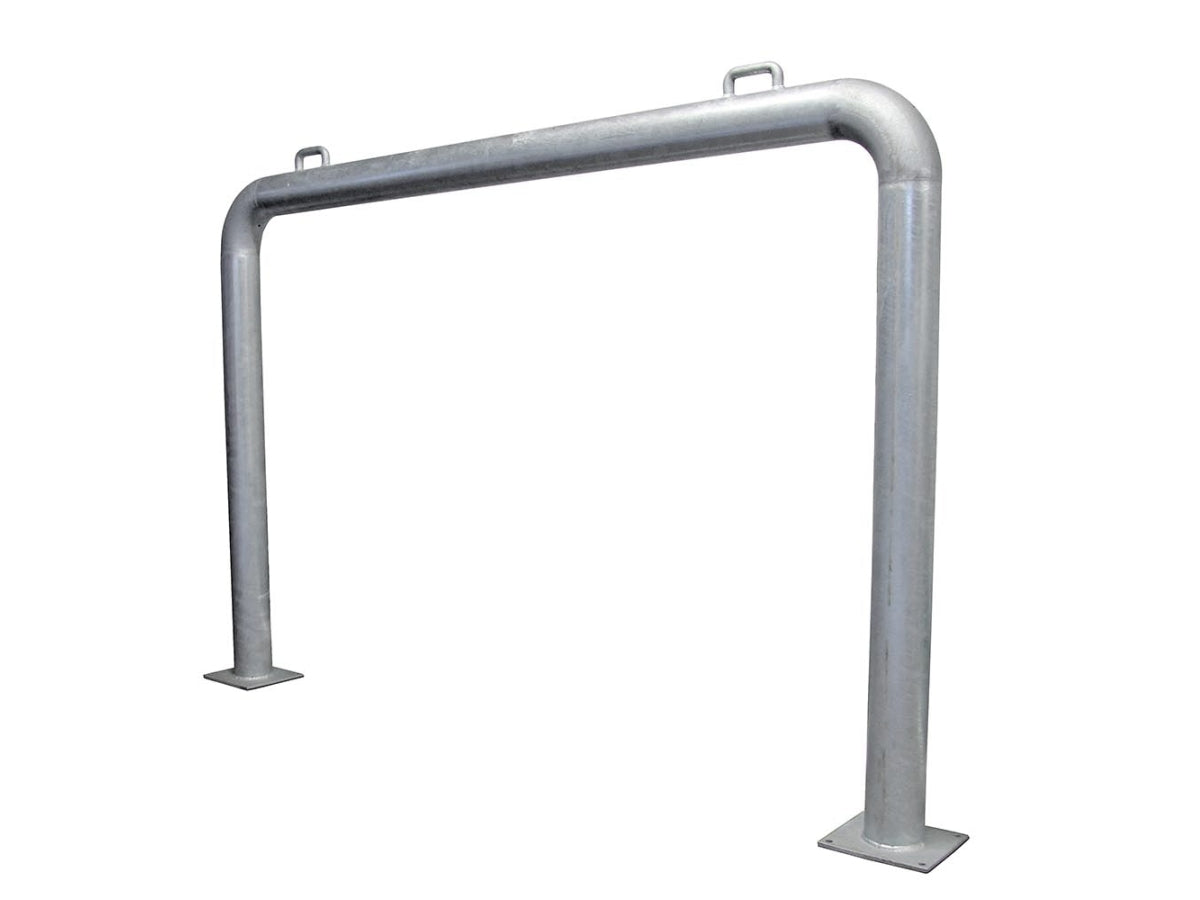 Dieser Growi® U-Bügel ist eine Rundrohrkonstruktion mit Bodenplatten zum Aufdübeln, z.B. als Anbindebügel auf Waschplätzen oder in der Solarium-Box. Die extra stabile, feuerverzinkte Konstruktion aus Rundrohr hat einen Durchmesser von 102 mm. Die Bodenplatten zum Aufdübeln haben eine Abmessung von ca. 200 x 200 mm. Die Abmessung des gesamten U-Bügels beträgt ca. 1300 mm Höhe x 2000 mm Länge. Preis pro Stück.