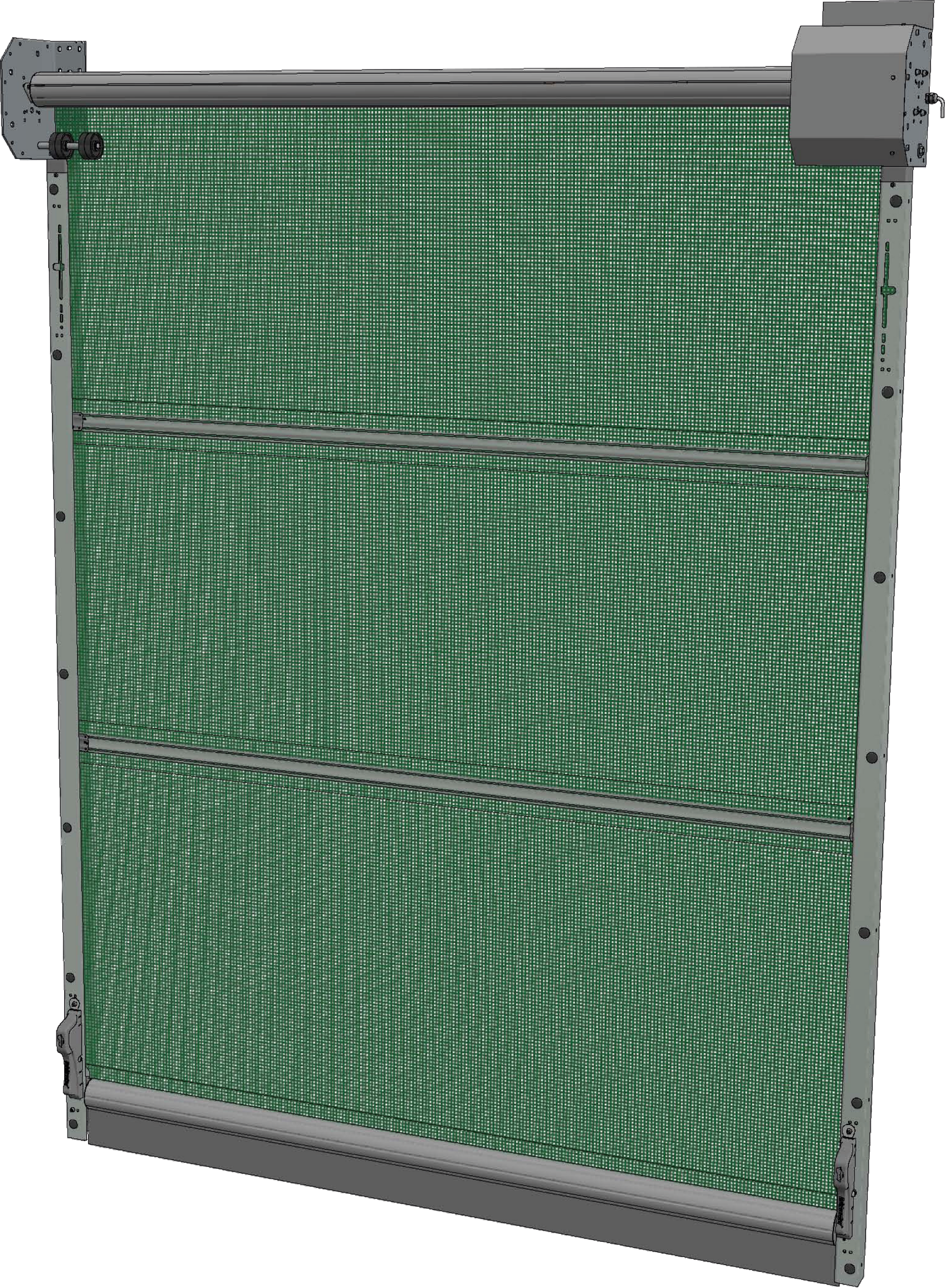 Die Breite des Tores muss vor Ort auf die Öffnungsbreite zugeschnitten werden, zum Höhenausgleich kann ein Rest auf dem oberen Rohr aufgewickelt bleiben.