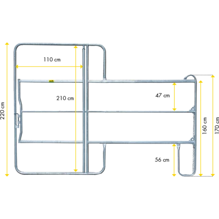 Panel mit 3 Querrohren zum Einsatz bei Pferden. Leichte Alternative zu den üblichen 6-rohrigen Panels gleicher Höhe.