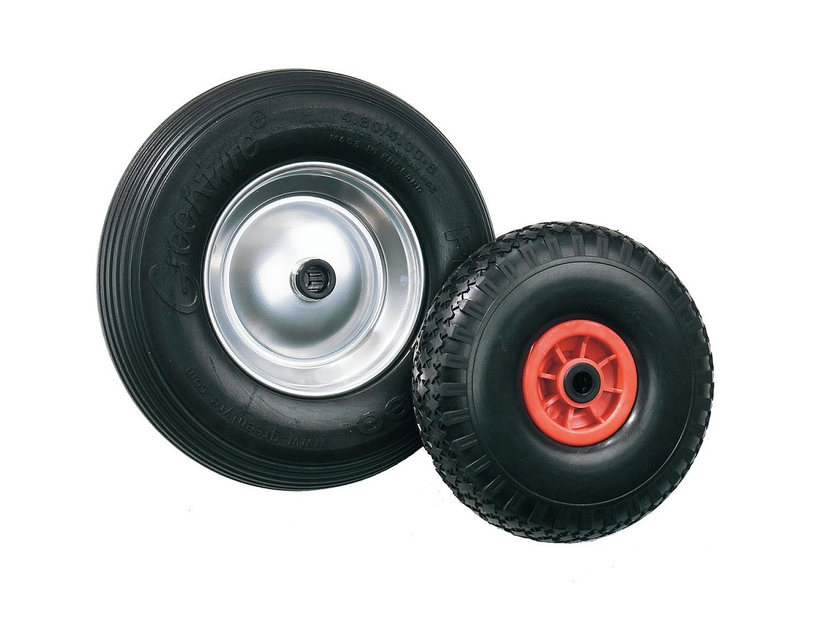PU-Räder sind universell einsetzbar für Schubkarren, Handwagen und ähnliche Geräte. Dabei können dem Reifen weder Dornen noch Nägel oder Glasscherben etwas anhaben. Platte Reifen gehören damit der Vergangenheit an. PU-Reifen sollten aber nicht dauerhaft unter großer Belastung stehen, da dann ein so genannter Standplatten entsteht, der sich nur langsam wieder zurückbildet.
