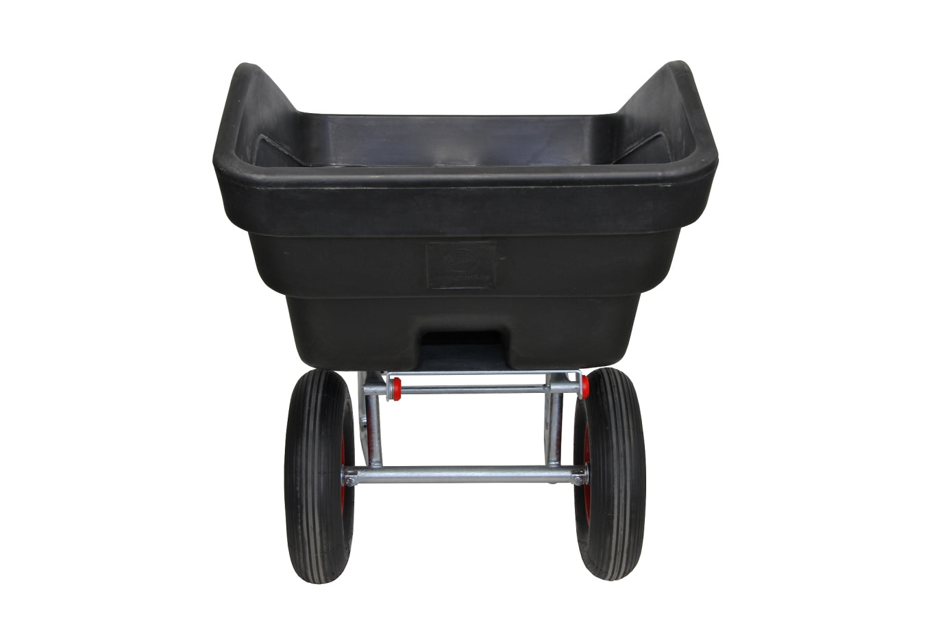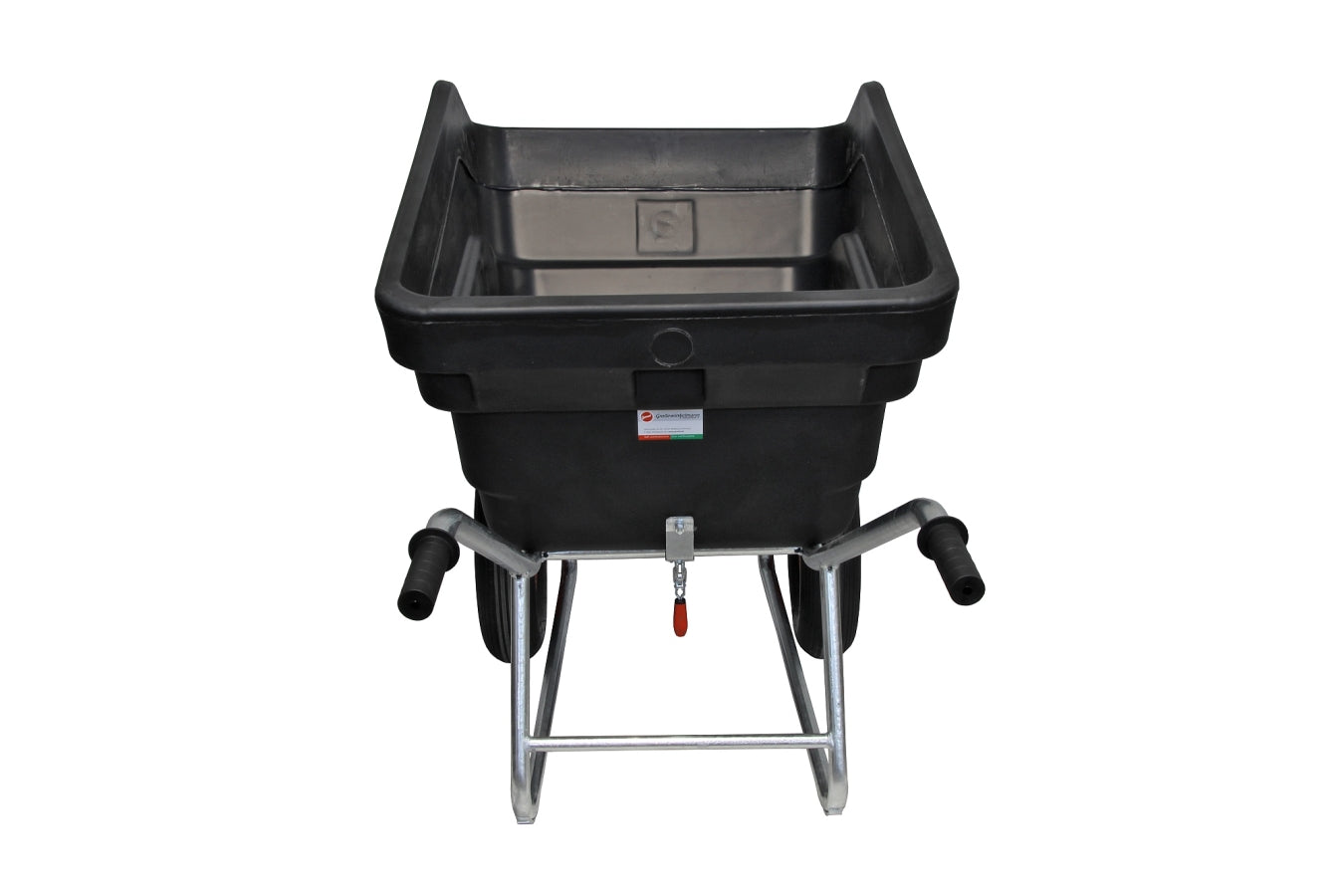 Growi® Compactkarre, kippbar, mit schwarzer PE-Mulde, Untergestell feuerverzinkt, Arretierung der Kippmulde mit Senkrechtspanner und Handgriff.