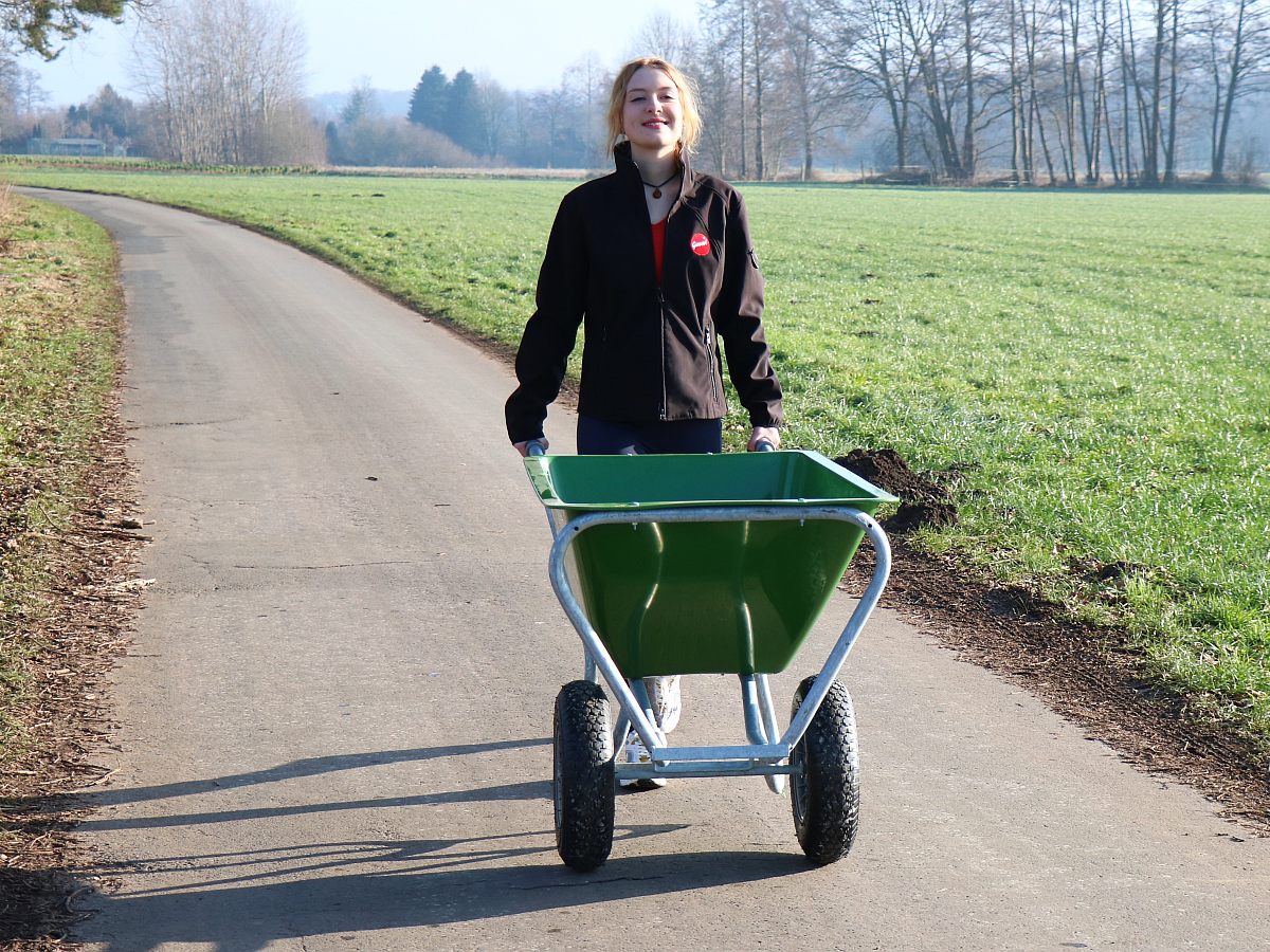 Die Kunststoffmulde fasst ca. 170 Liter Inhalt und transportiert problemlos große Materialmengen.
