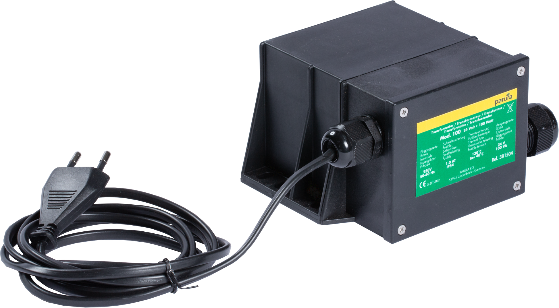 Aus Sicherheitsgründen werden bei heizbaren Tränkebecken Transformatoren eingesetzt, um die Netzspannung von 230 V auf eine für die Tiere sichere Spannung von 24 V zu reduzieren. Somit besteht keine Gefahr für die Tiere und gegebenenfalls für den Menschen, wenn eine Kabelbeschädigung, wie z.B. durch Tierverbiss auftritt.