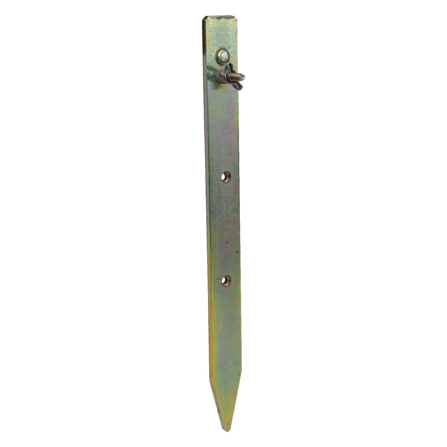 Mit einer stabilen Länge von 32 cm und einer Materialstärke von 2 mm, gefertigt aus verzinktem Eisen, bietet dieser Pfahl die nötige Festigkeit und Langlebigkeit. Er wird komplett mit einer Anschlussschraube geliefert, was die Installation unkompliziert und schnell macht.