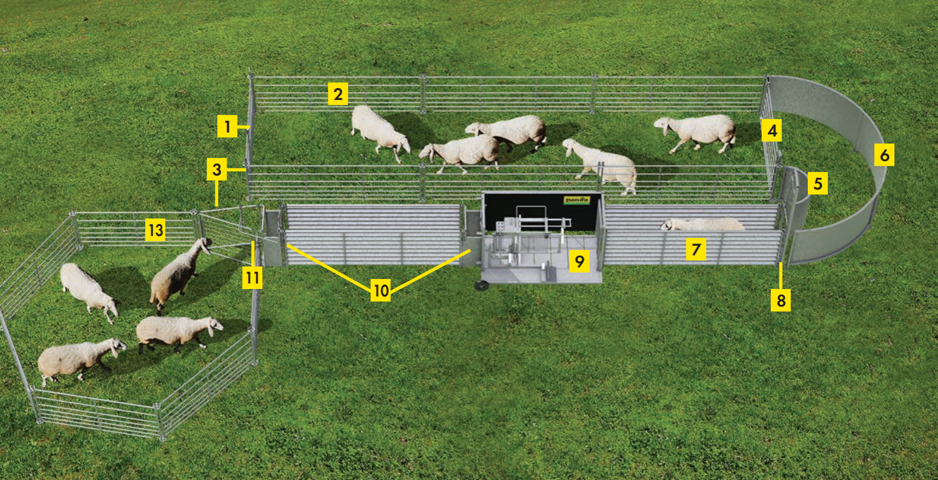 Die Komplettanlage mit Behandlungsstand eignet sich zum Fangen, Behandeln und Sortieren von Schafen.
