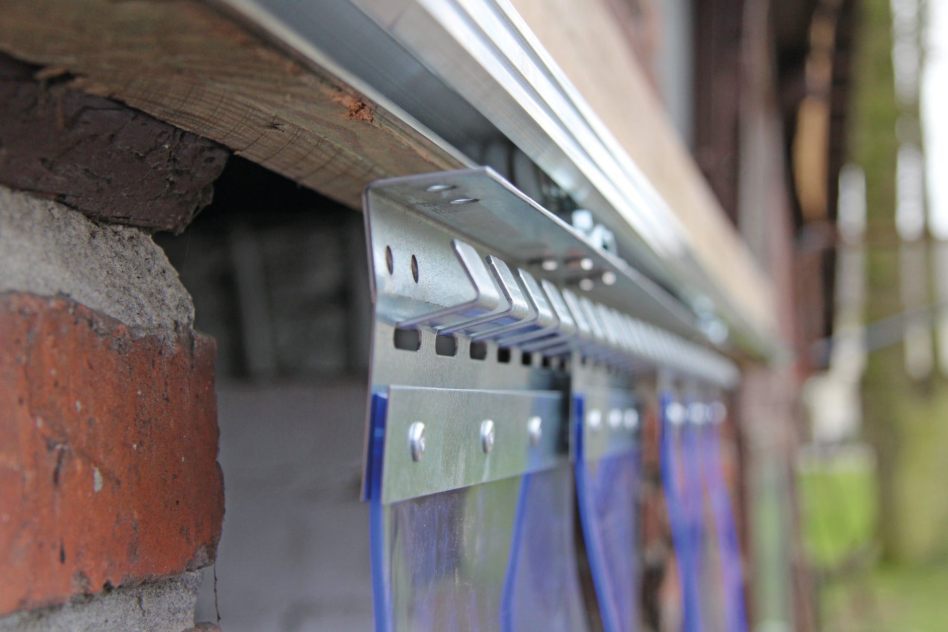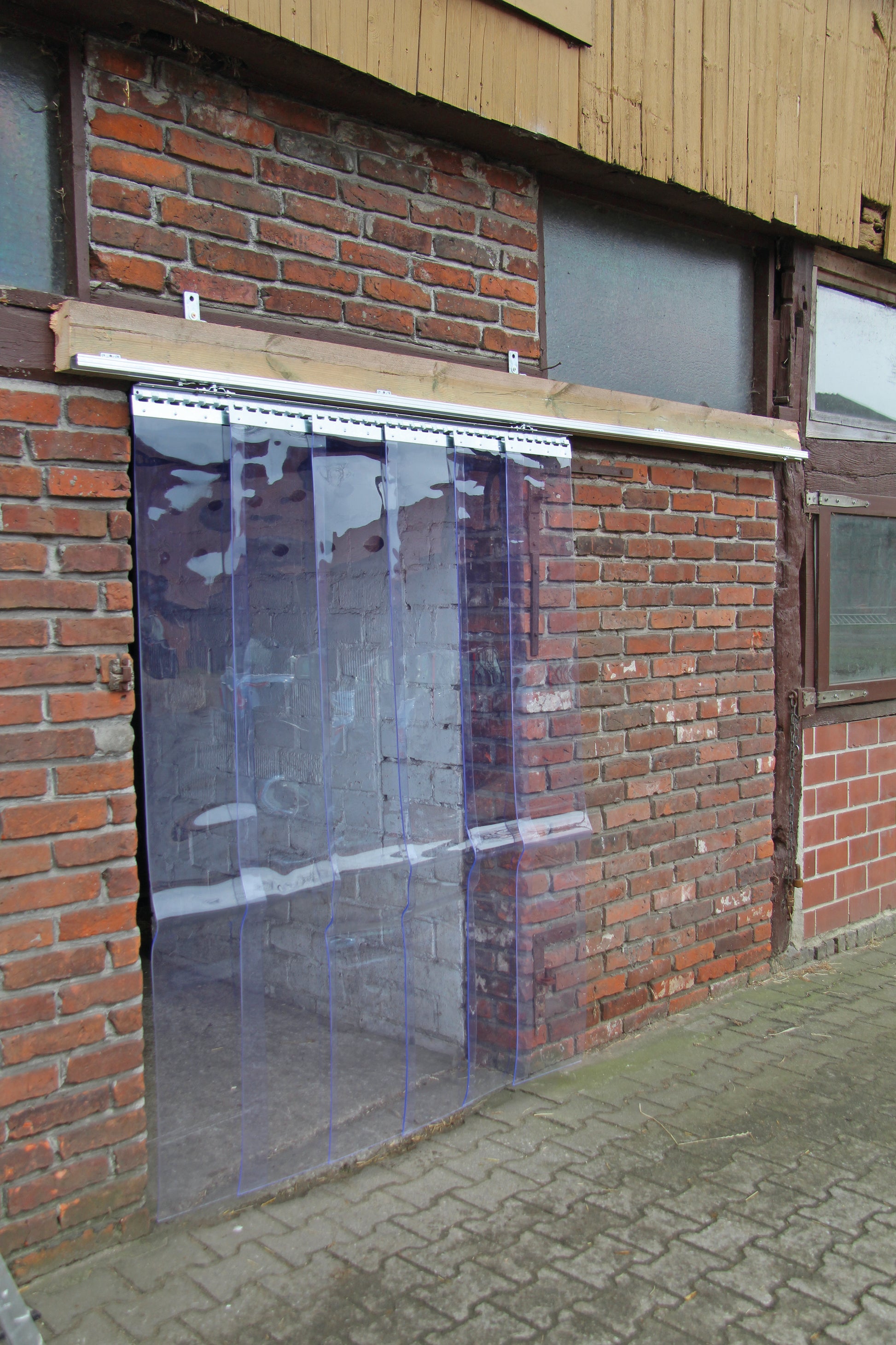 Raus oder rein? Mit der Growi Pendeltürfolie kann jeder einfach in den Stall, ohne schwere Türen zu öffnen. Der Wind bleibt draußen, die Wärme drinnen.