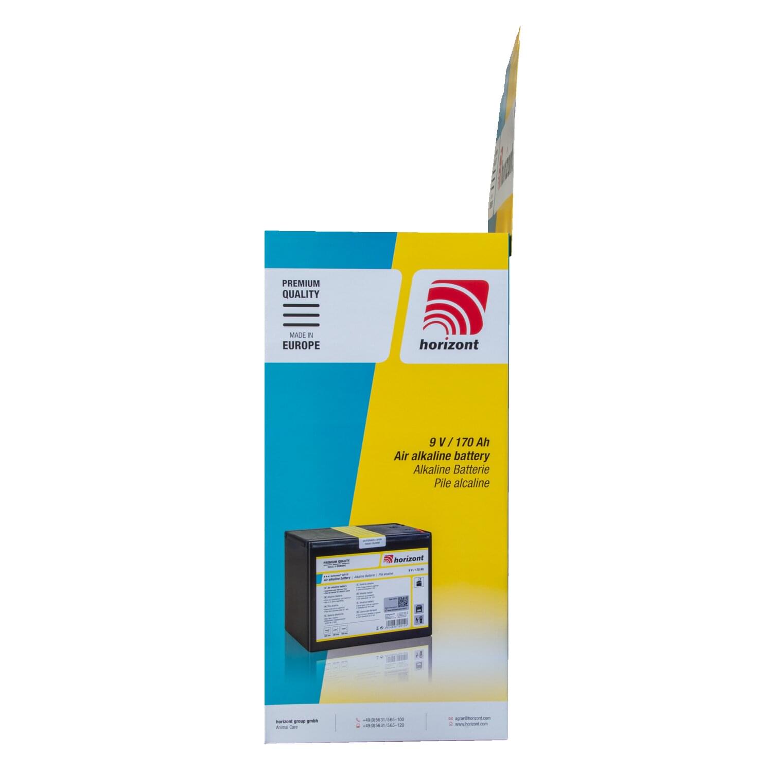 Verlassen Sie sich auf die unübertroffene Leistung und Langlebigkeit unserer horizont turbomax® AB170 Alkaline-Batterie. Mit einer Kapazität von 170 Ampere-Stunden und einer Lagerfähigkeit von bis zu zwei Jahren bietet sie eine konstante und zuverlässige Stromversorgung für Ihre Weidezaungeräte.