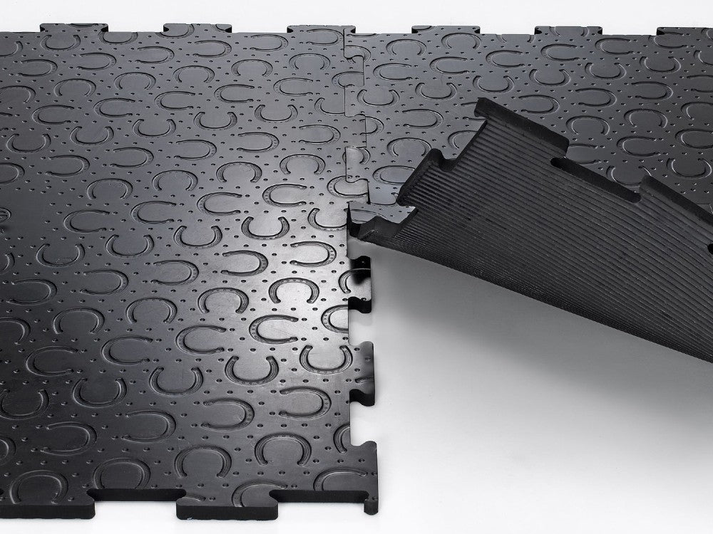 BELMONDO® Gummimatten entsprechen allen Anforderungen, die das Pferd an einen perfekten Untergrund stellt. Sie schonen Sehnen und Gelenke, unterstützen den gesamten Bewegungsapparat optimal, erhöhen den Komfort beim Liegen, isolieren die Strahlungskälte des Unterbodens und bieten die größtmögliche Sicherheit für das Tier, da durch die hohe Tritt- und Rutschsicherheit der Matten das Unfallrisiko minimiert wird. Die Puzzleverbindung ist extrem passgenau, gewährleistet einen stabilen Verbund (keine hochstehenden Ecken) und ergibt eine nahezu fugenlose Oberfläche. Die Matten lassen sich aus- und wieder einbauen (z.B. für Reinigung, Umbau, Temporäranlagen) und können bei Abnutzung einzeln ersetzt oder innerhalb der Fläche getauscht werden.