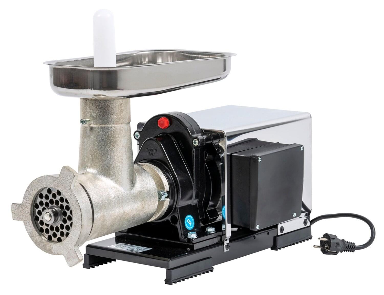 Der hochwertige REBER Fleischwolf N32 Classic verarbeitet Ihre Fleischsorten dank eines kontinuierlich arbeitenden Induktionsmotors mit eihner Leistung von 1200 Watt mühelos und zuverlässig.