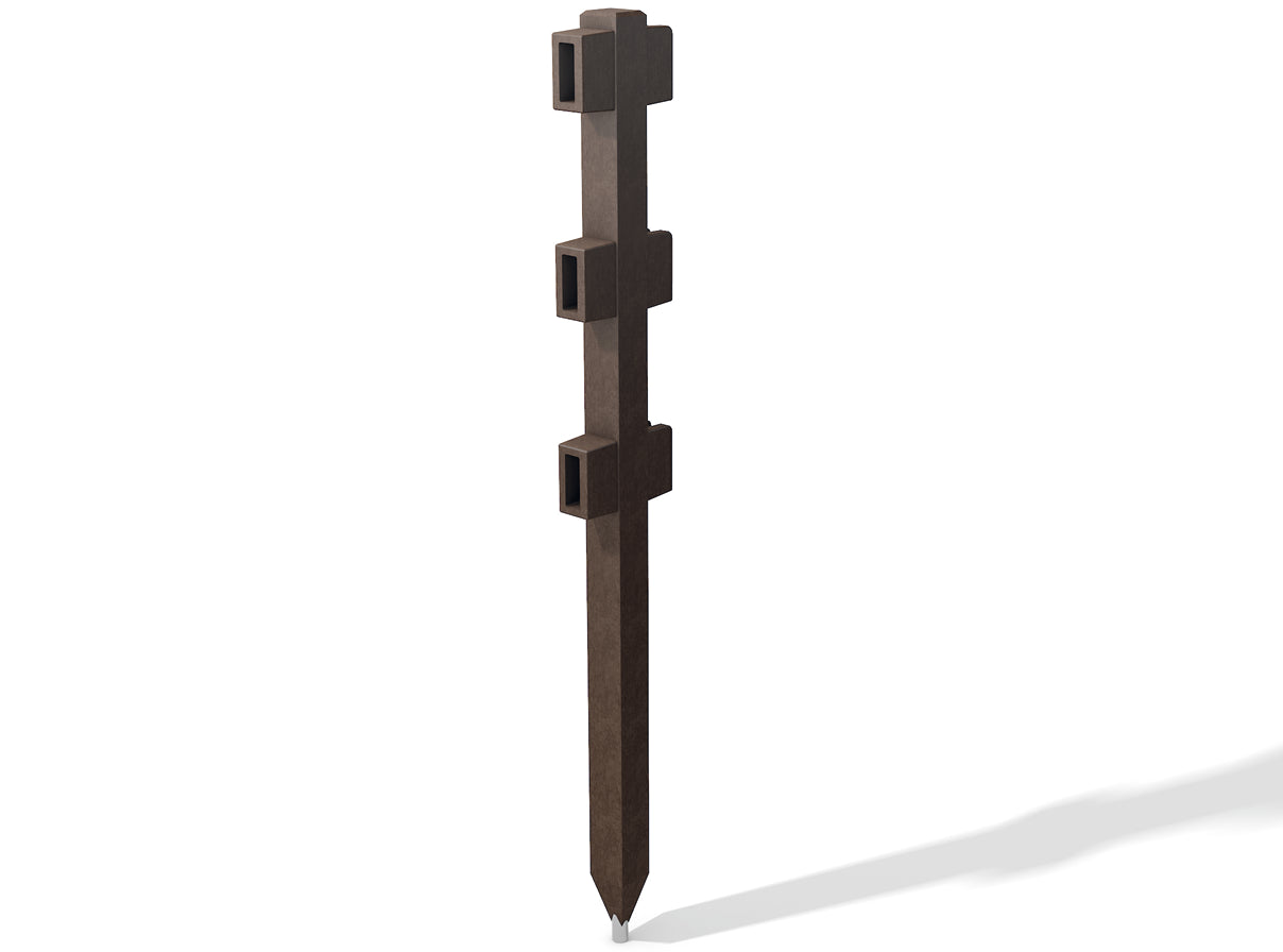 Angespitzt zum Rammen oder Betonieren, mit Stahlkern verstärkt.
